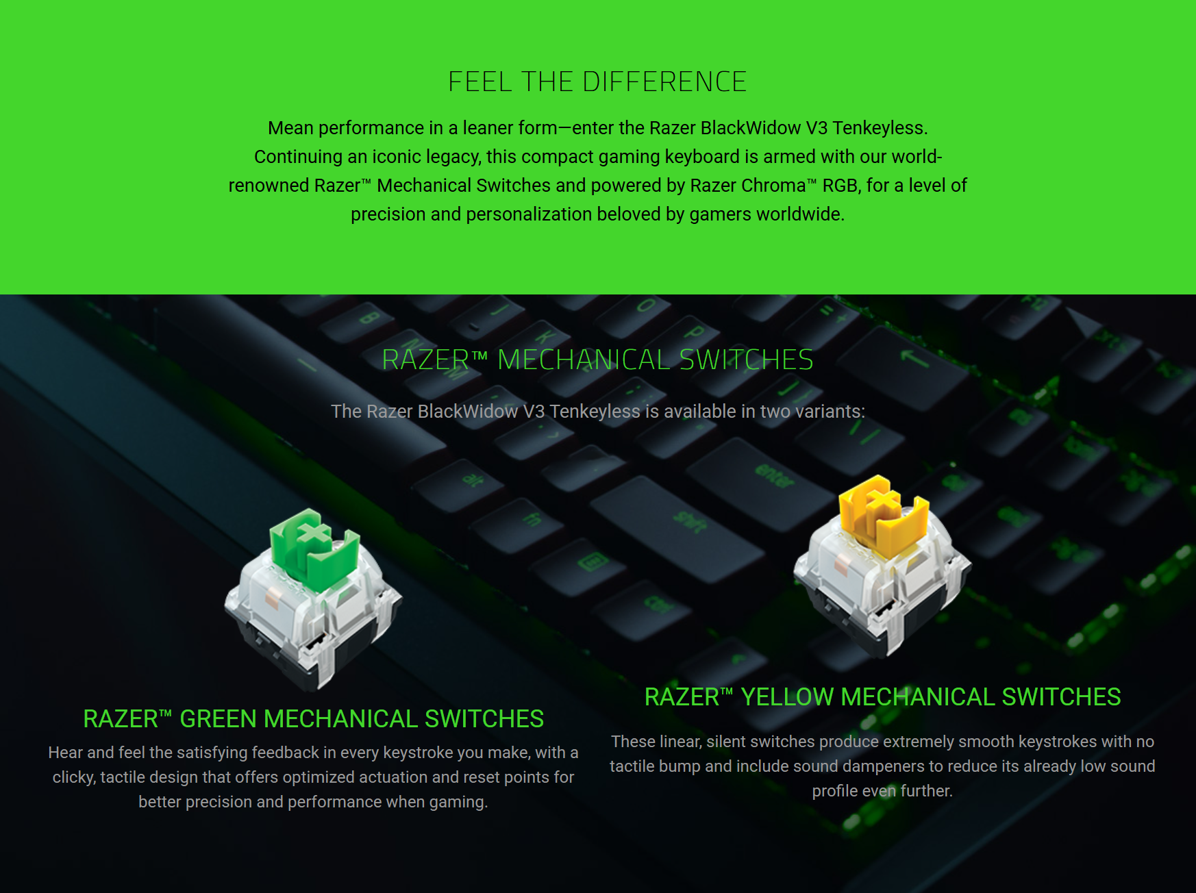 💠 Switch Type – Razer™ Green Mechanical Switch, Razer™ Yellow Mechanical Switch