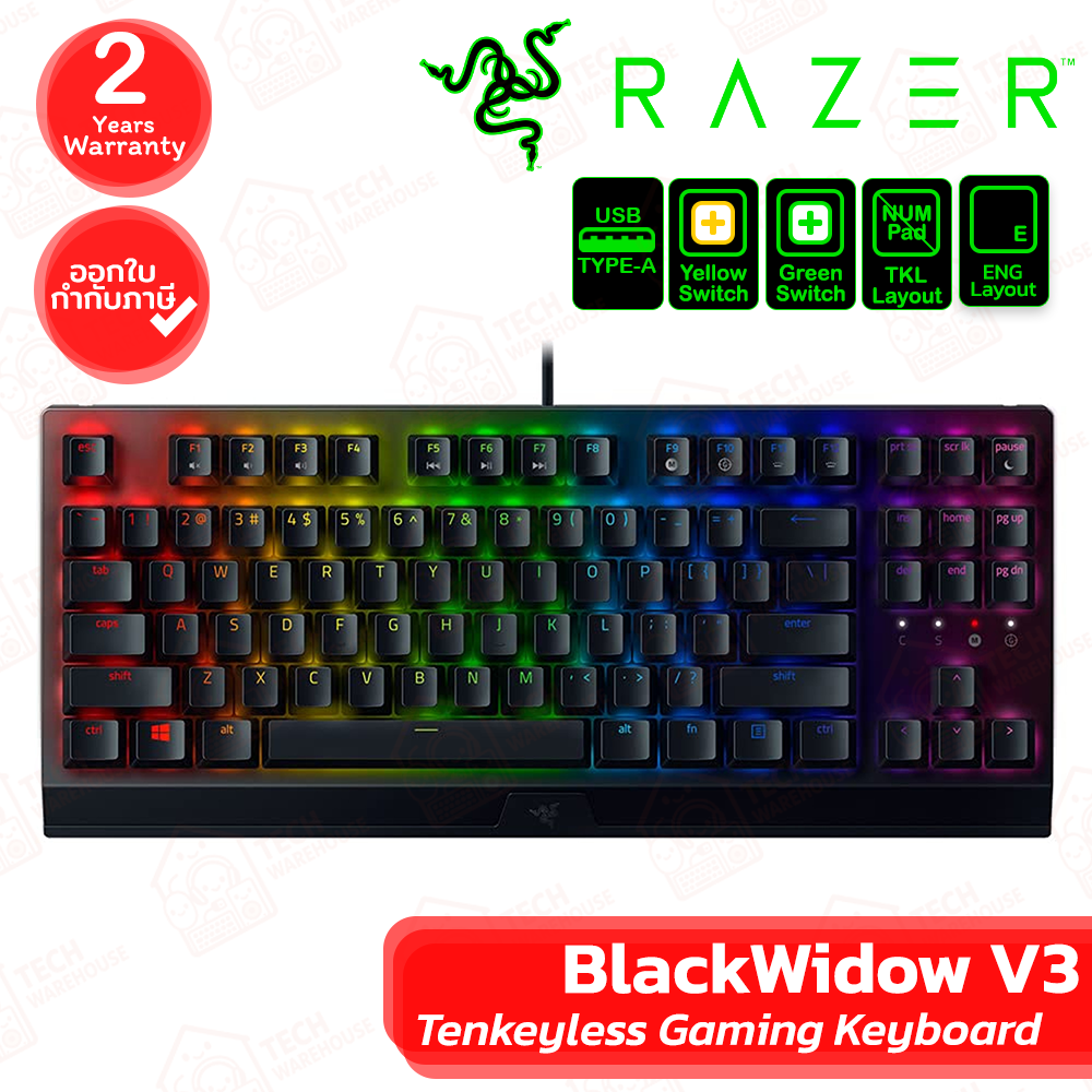 🔶Razer BlackWidow V3 Tenkeyless Mechanical Gaming Keyboard [US] คีย์บอร์ดเกมมิ่ง มีสาย ของแท้ ประกันศูนย์ 2ปี🔶