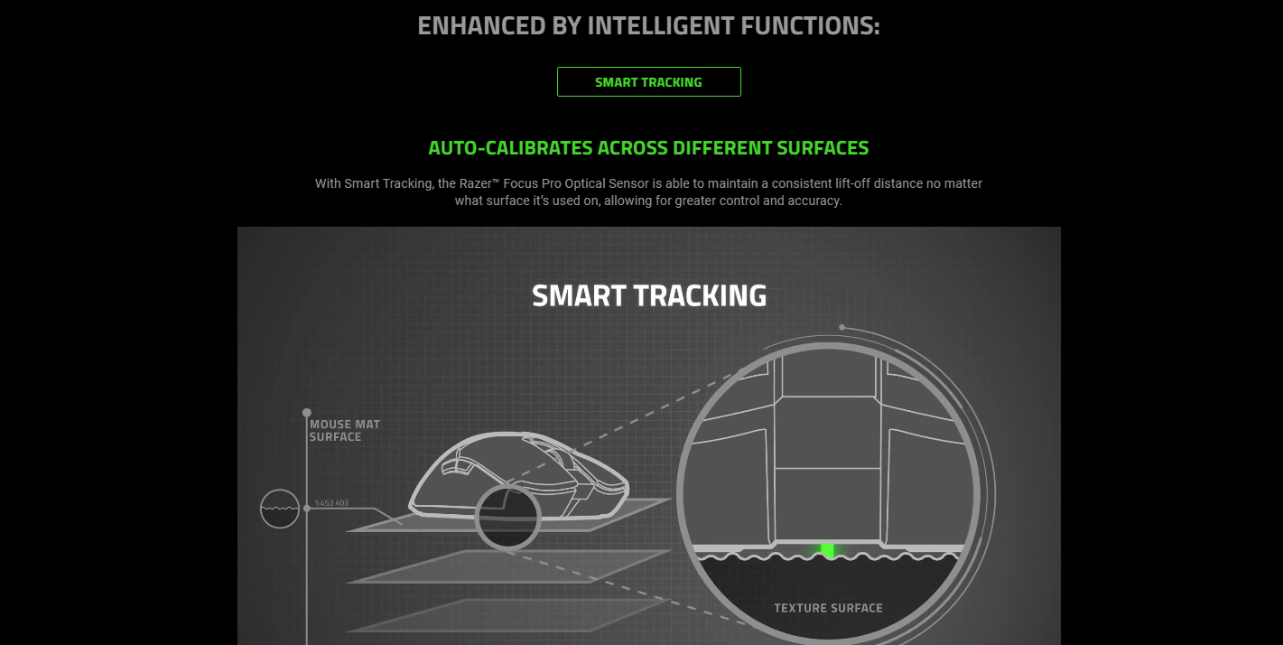 With Smart Tracking, the Razer™ Focus Pro Optical Sensor is able to maintain a consistent lift-off distance no matter what surface it’s used on, allowing for greater control and accuracy.