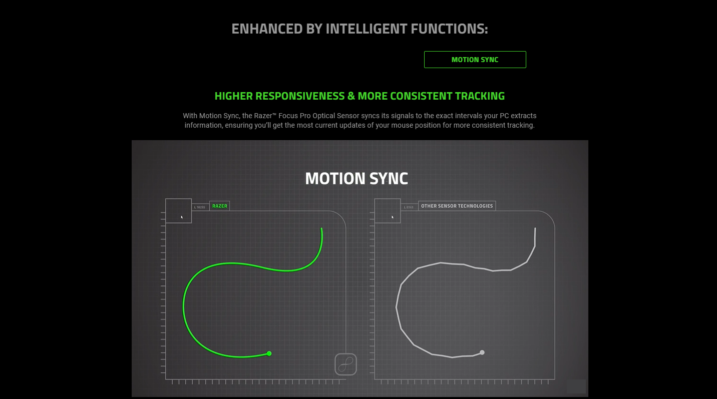 With Motion Sync, the Razer™ Focus Pro Optical Sensor syncs its signals to the exact intervals your PC extracts information, ensuring you’ll get the most current updates of your mouse position for more consistent tracking.