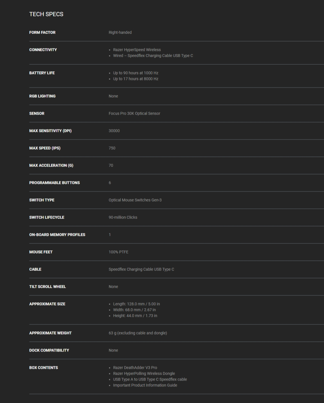 Victory takes on a new shape with the Razer DeathAdder V3 Pro. Refined and reforged with the aid of top esports pros, its iconic ergonomic form is now more than 25% lighter than its predecessor, backed by a set of cutting-edge upgrades to push the limits of competitive play.