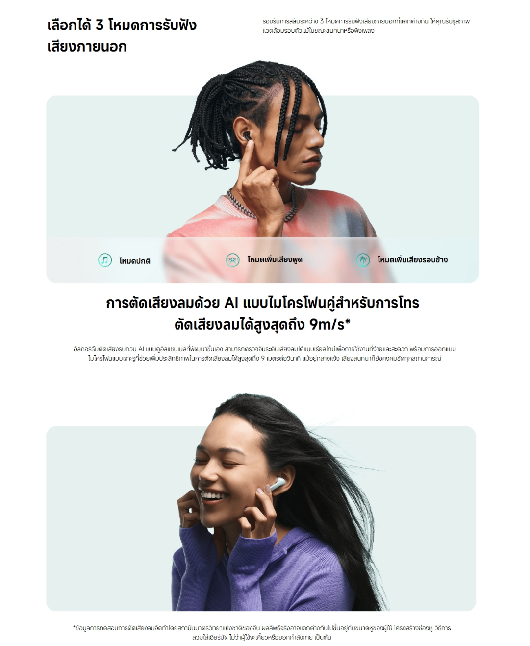 ✨✨✨การตัดเสียงลมด้วย AI แบบไมโครโฟนคู่สำหรับการโทร ตัดเสียงลมได้สูงสุดถึง 9m/s*✨✨✨