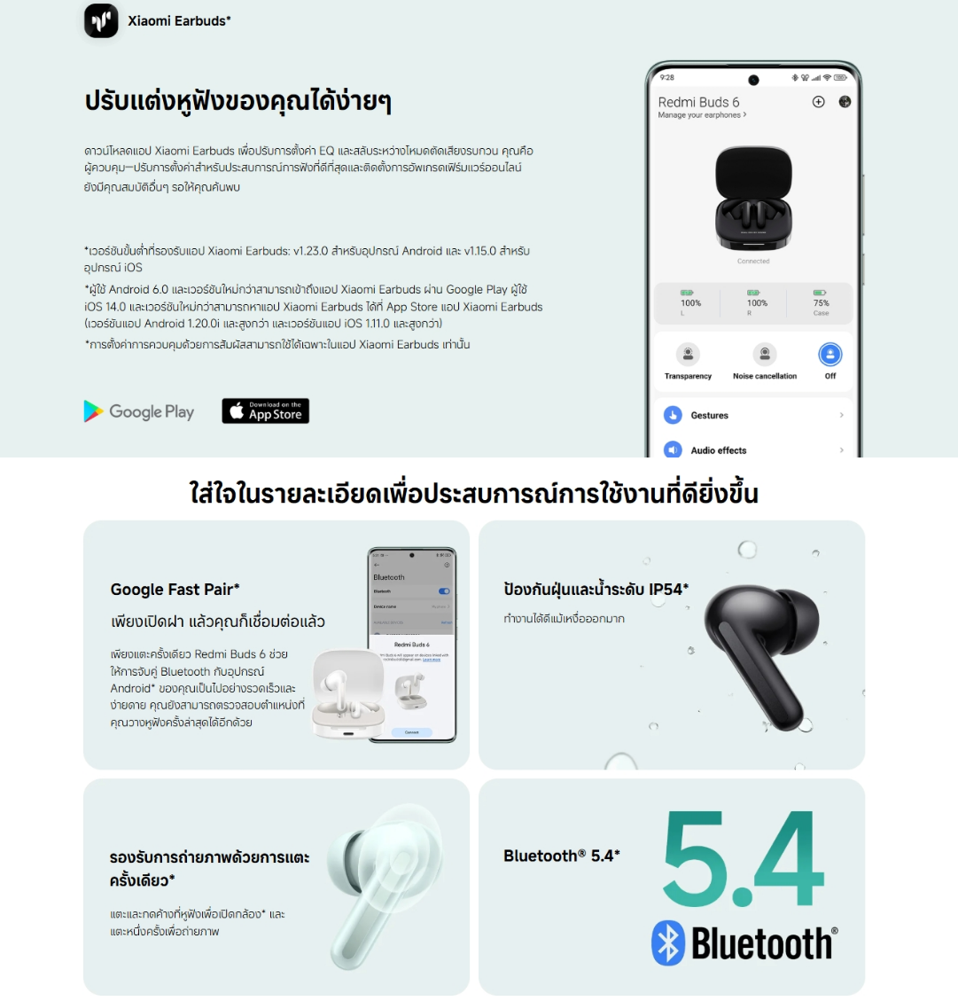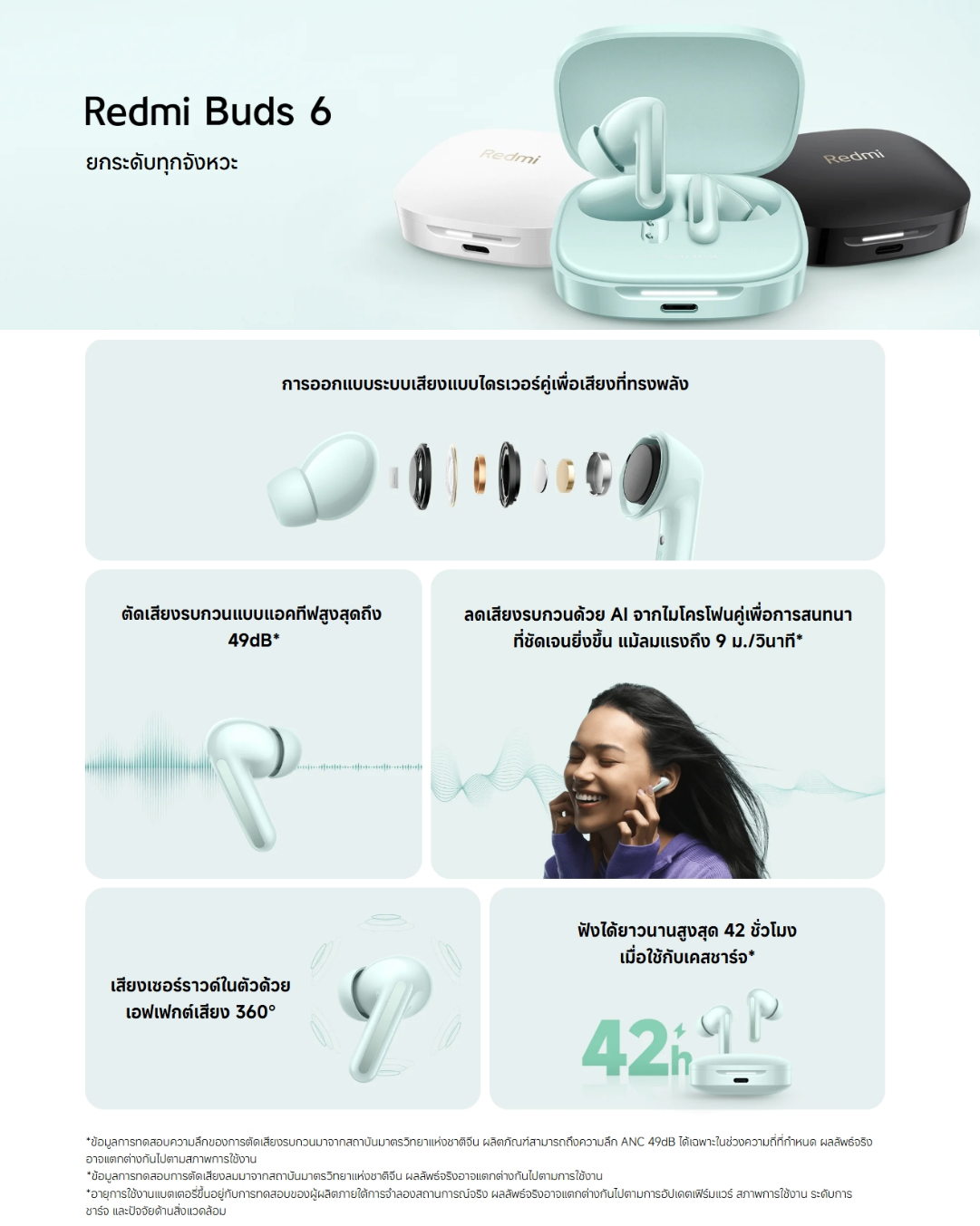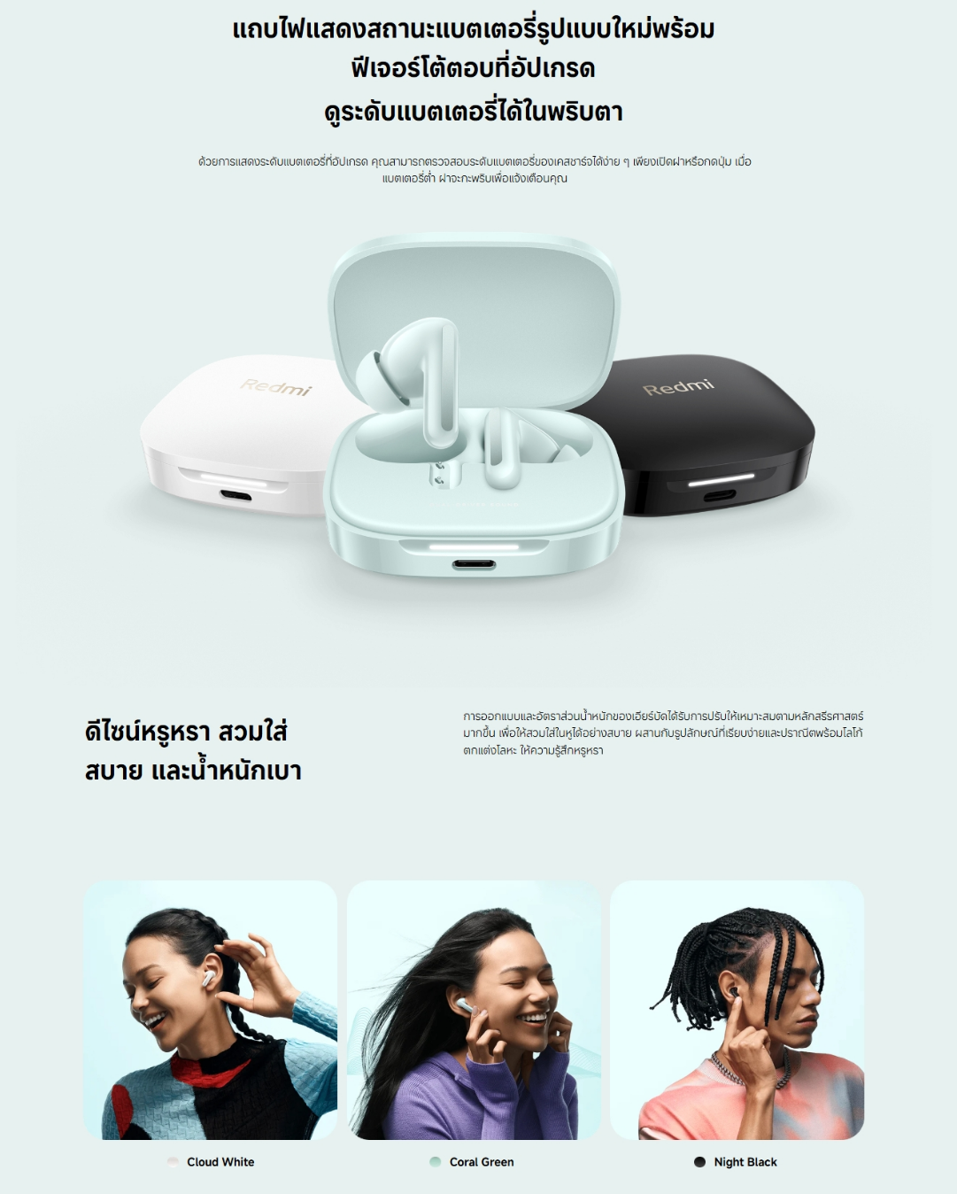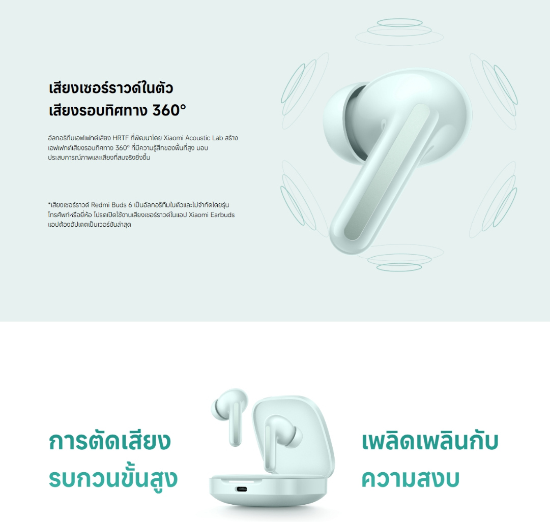 🔶Redmi Buds 6 หูฟังบลูทูธ ไร้สาย มีให้เลือก 3 สี (Coral Green,Cloud White,Night Black) ของแท้ ประกันศูนย์ 1ปี🔶