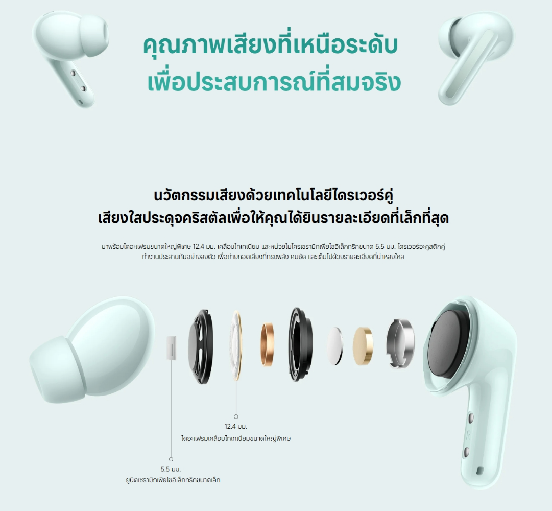 ✅ ไดรเวอร์ : แบบคู่ ขนาด 12.4 มม. และ 5.5 มม. ให้คุณภาพเสียงระดับ Hi-Fi