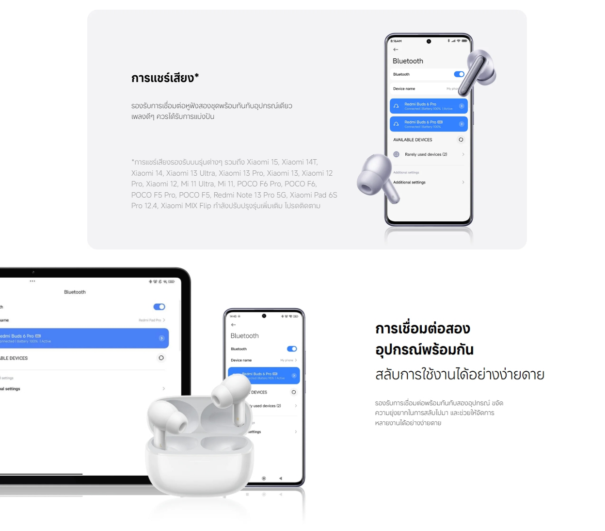 🔶Redmi Buds 6 Pro หูฟังบลูทูธ ไร้สาย มีให้เลือก 3 สี ของแท้ ประกันศูนย์ 1ปี 🔶