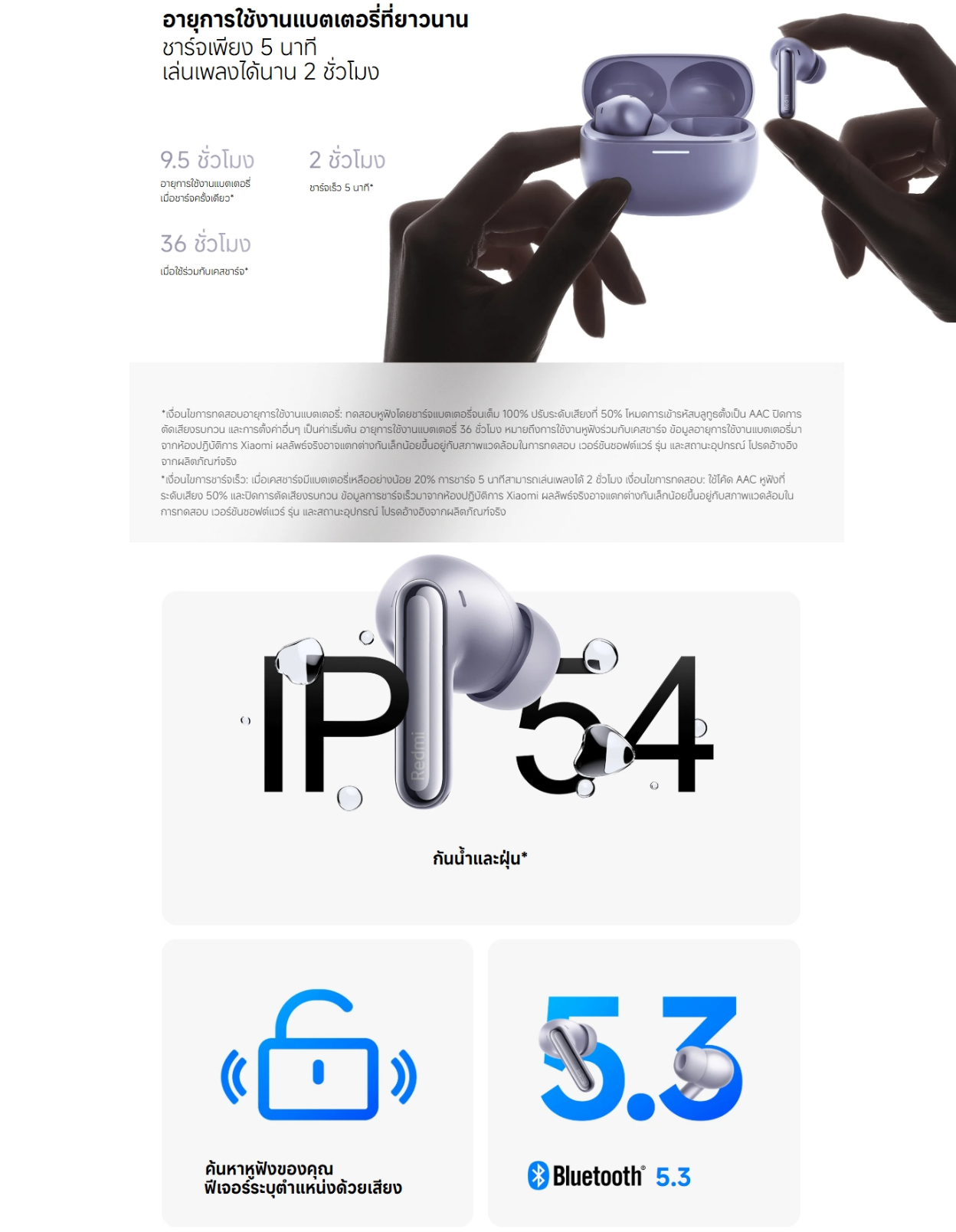 ✅ อายุการใช้งานแบตเตอรี่ : 9 ชั่วโมง และ 36 ชั่วโมงเมื่อใช้คู่กับเคส (ปิดการใช้งาน ANC)