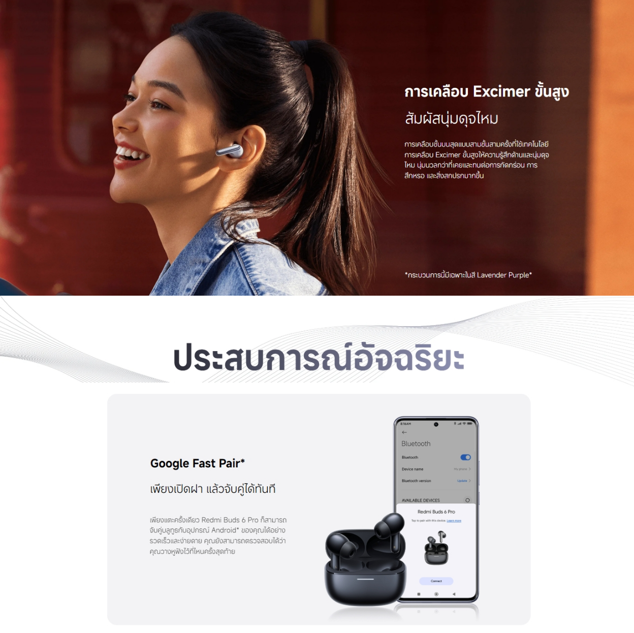 ด้วยการรับรอง Hi-Res Audio Wireless Redmi Buds 6 Pro รองรับการส่งสัญญาณ UHD ด้วยโค้ดเสียง LDAC และเสียงแบบสูญเสียคุณภาพต่ำพิเศษ เพื่อคุณภาพเสียงที่สูงขึ้น