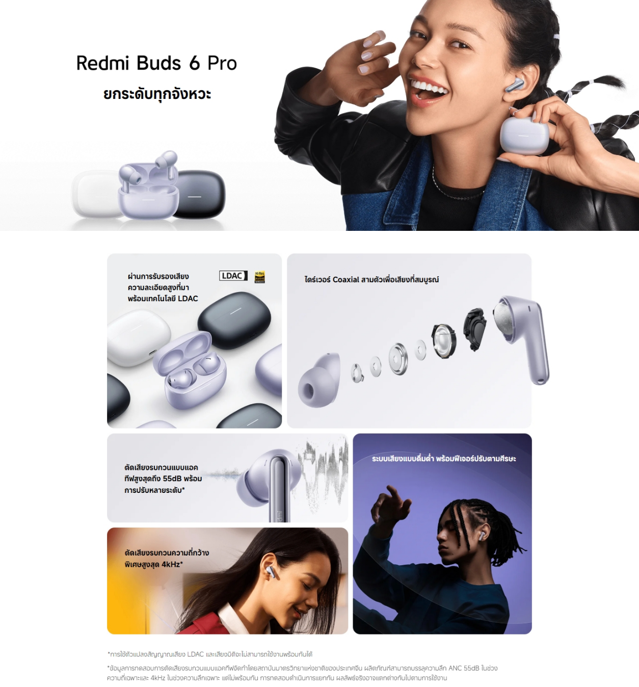 ✅ ระบบตัดเสียง : Hybrid ANC สูงสุด 55 dB