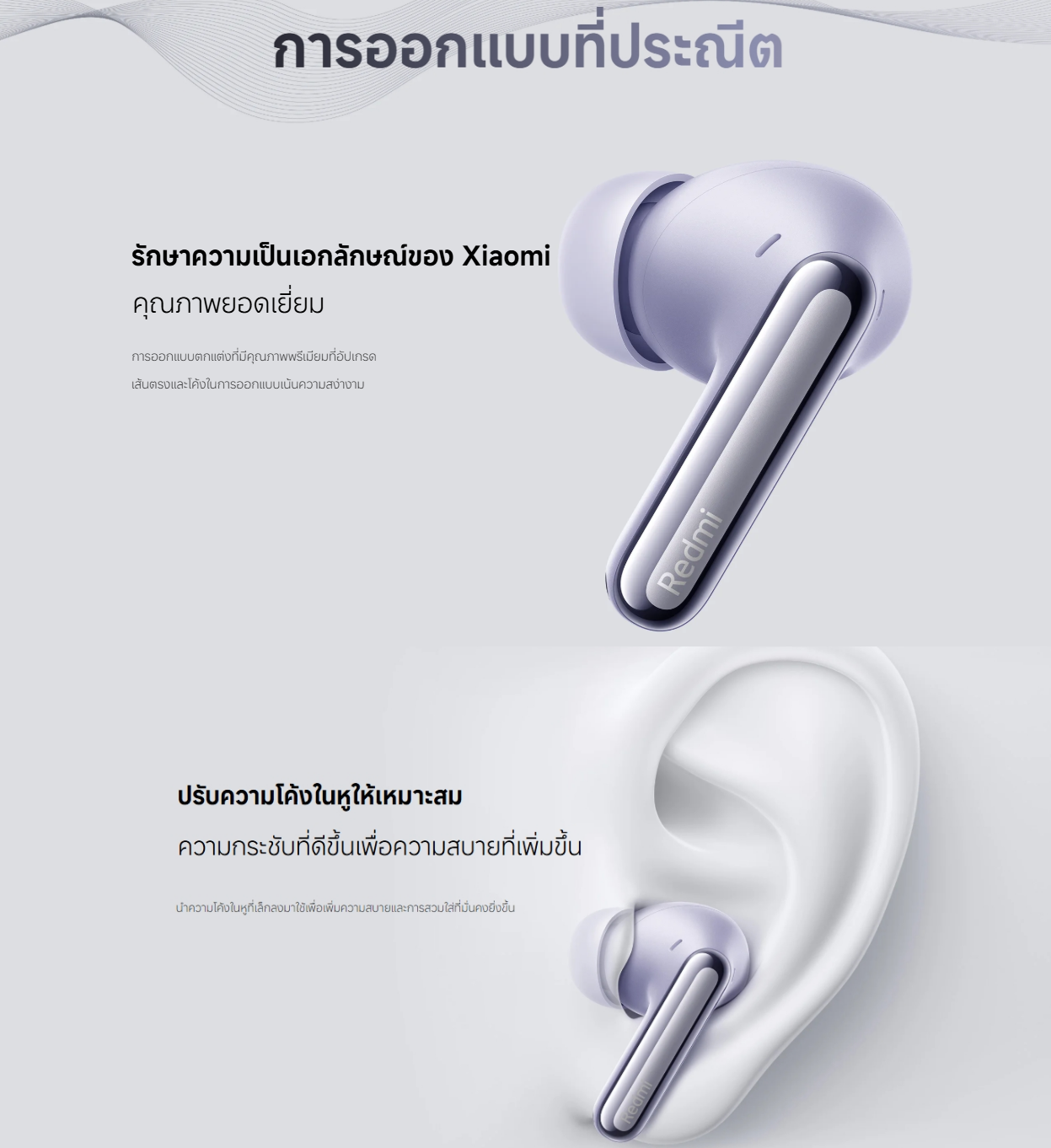 นำความโค้งในหูที่เล็กลงมาใช้เพื่อเพิ่มความสบายและการสวมใส่ที่มั่นคงยิ่งขึ้น