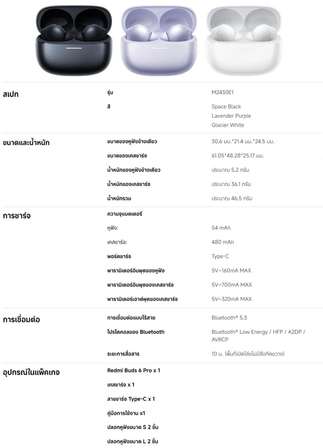 ✅ น้ำหนัก :5.2 กรัม (หูฟัง 1 ข้าง) / 46.5 กรัม (น้ำหนักรวมเคส)