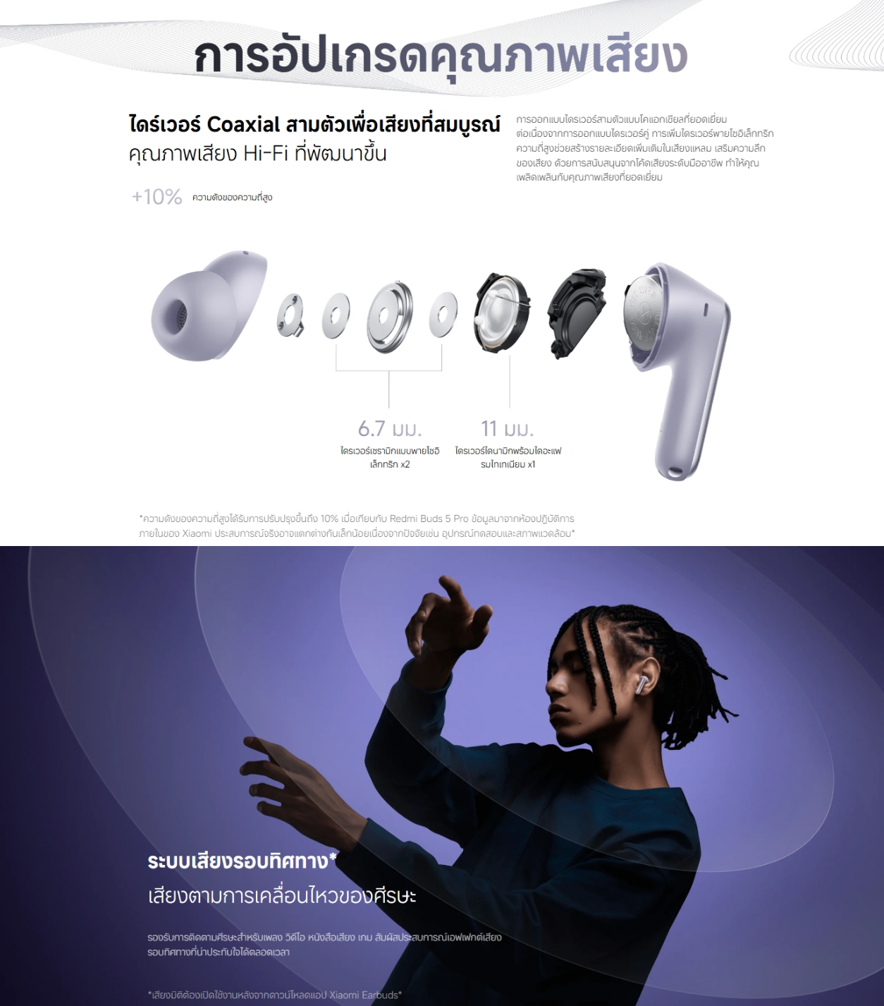 ✅ ไดรเวอร์ : แบบคู่ ขนาด 11 มม. และ 6.7 มม. ให้คุณภาพเสียงระดับ Hi-Res รองรับ LDAC