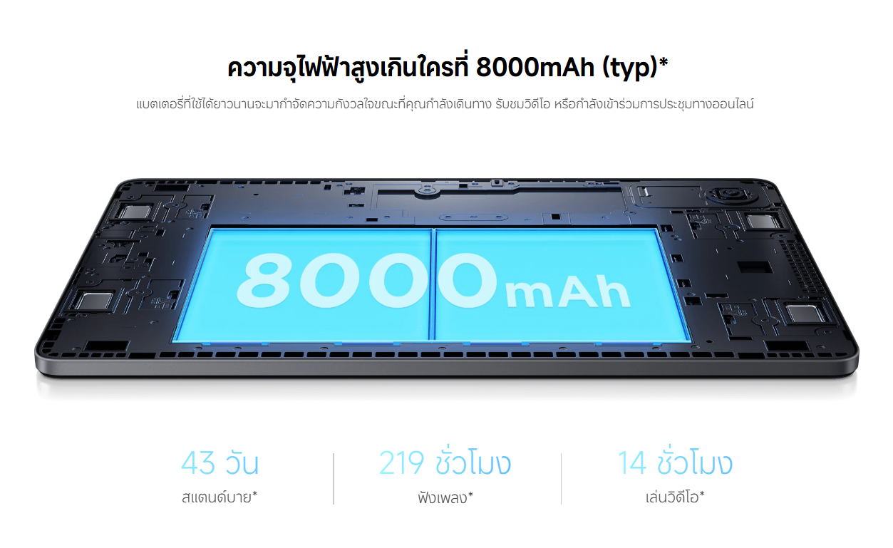 ✅ แบตเตอรี่ขนาด 8000mAh รองรับการชาร์จ 10W