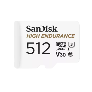 Rated Class 10 and video speed U3 and V30, the SanDisk High Endurance microSD card has the speed to record in Full HD or 4K.