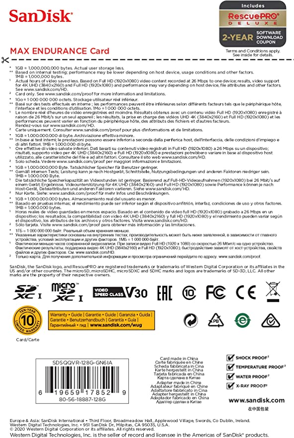 - มาตรฐานความเร็วระดับ Class 10 และความเร็ววิดีโอ U3 และV30 จึงเร็วสำหรับการบันทึกแบบ Full HD หรือ 4K