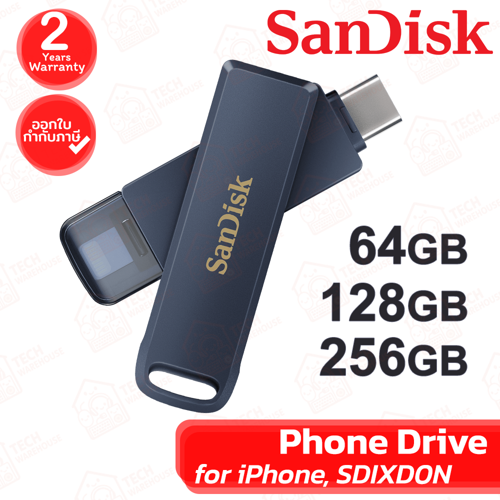 🔶SanDisk Phone Drive for iPhone [SDIXD0N] แฟลชไดร์ฟ ใช้กับโทรศัพท์มือถือได้ [64GB, 128GB, 256GB] ของแท้ ประกันศูนย์ 2ปี🔶