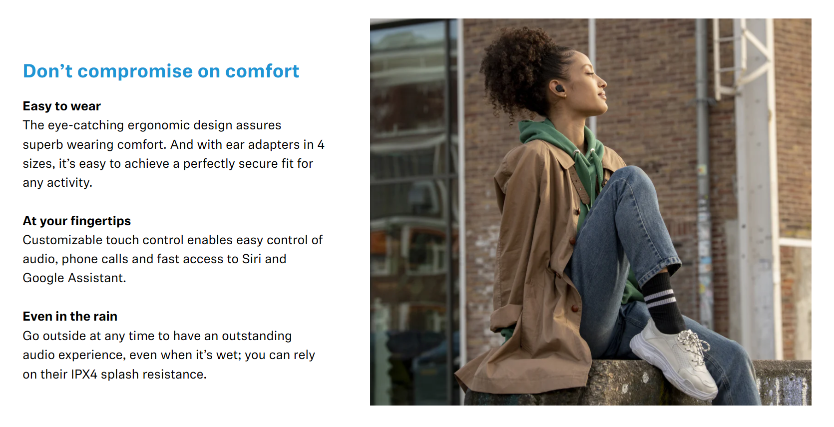 Customizable touch control enables easy control of audio, phone calls and fast access to Siri and Google Assistant.