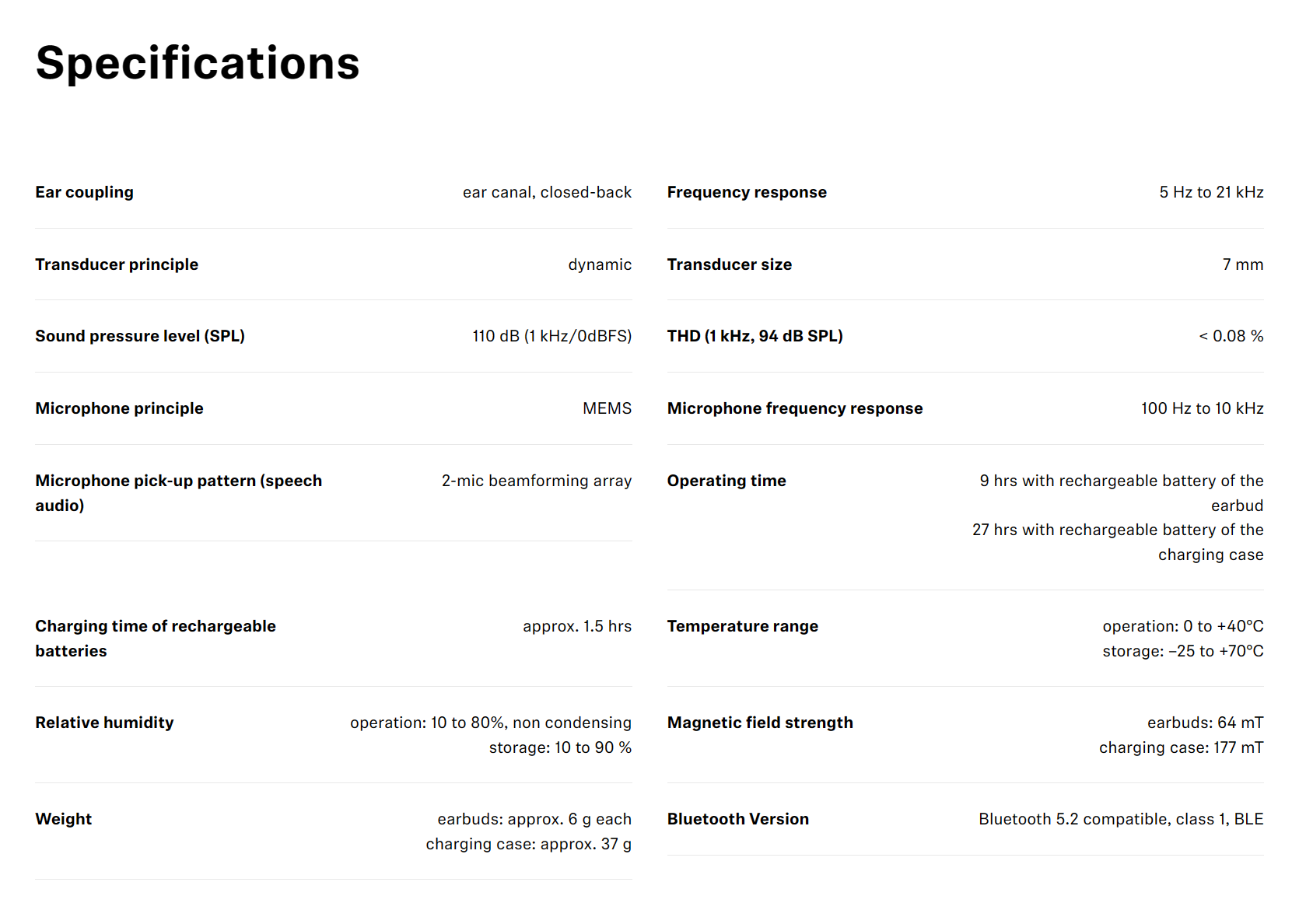 📌 Magnetic field strength – earbuds: 64 mT, charging case: 177 mT