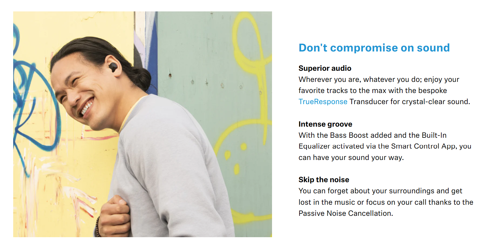 Wherever you are, whatever you do; enjoy your favorite tracks to the max with the bespoke TrueResponse Transducer for crystal-clear sound.