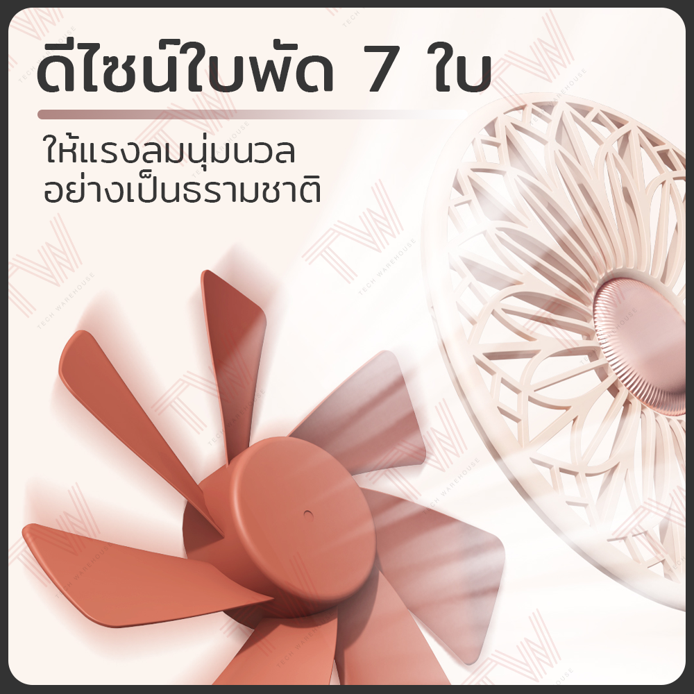 ✅ ดีไซน์ใบพัด 7 ใบ ให้ลมที่นุ่มนวลเหมือนธรรมชาติ
