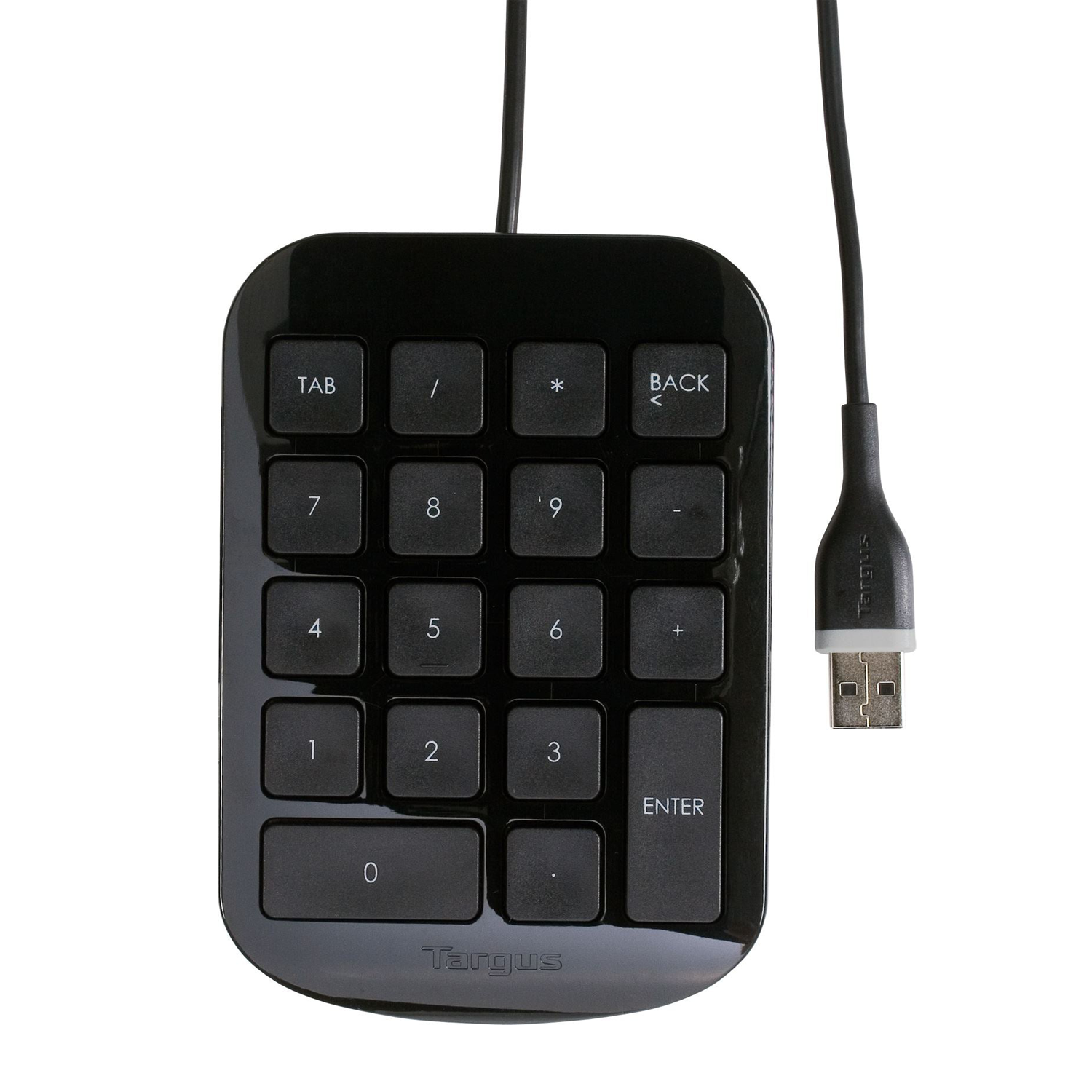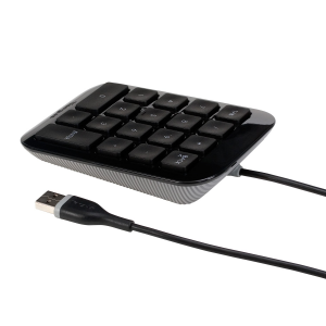 The Targus Numeric Keypad allows users to type numbers into spreadsheets and other applications quickly and easily. The full-size 19mm keys improve speed and accuracy by making it easier to locate and press the numbers you are looking for. The integrated ergonomic tilt provides added comfort which helps reduce strain after a long work day. The USB cord is 3 feet / 90 cm long to provide additional flexibility in the workspace. The Targus Numeric Keypad is ideal for office or home use.