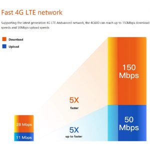 รองรับมาตรฐานเครือข่าย LTE หมวดหมู่ 4, 4G680 สามารถเข้าถึงความเร็วในการดาวน์โหลดสูงถึง 150Mbps และความเร็วในการอัพโหลด 50Mbps