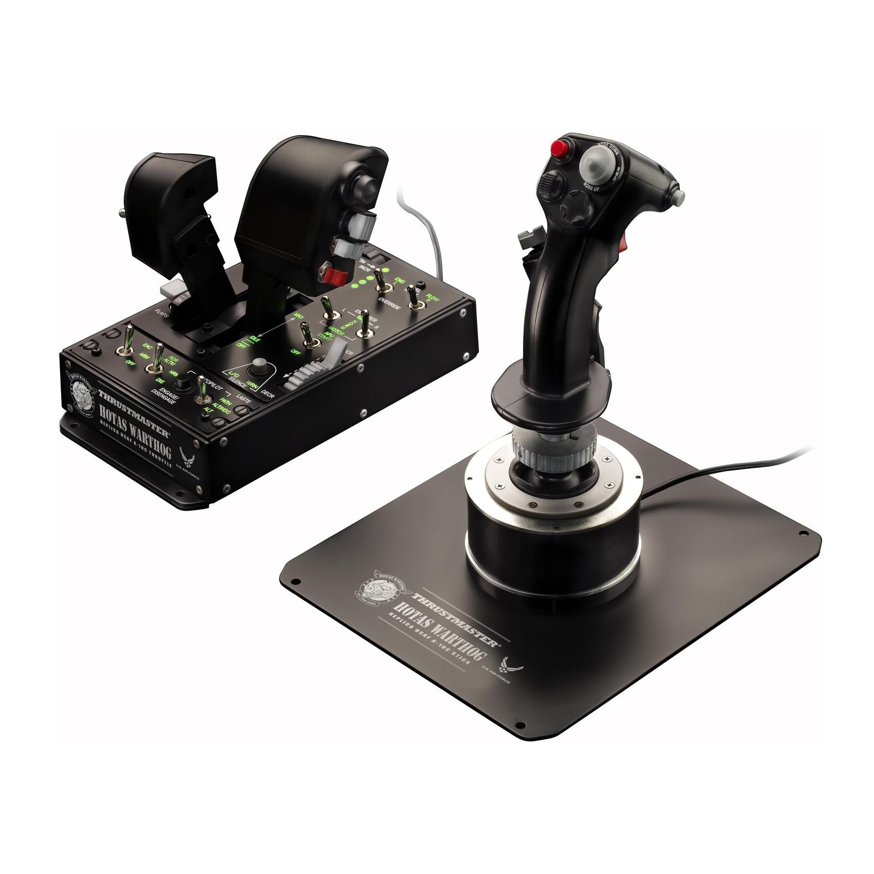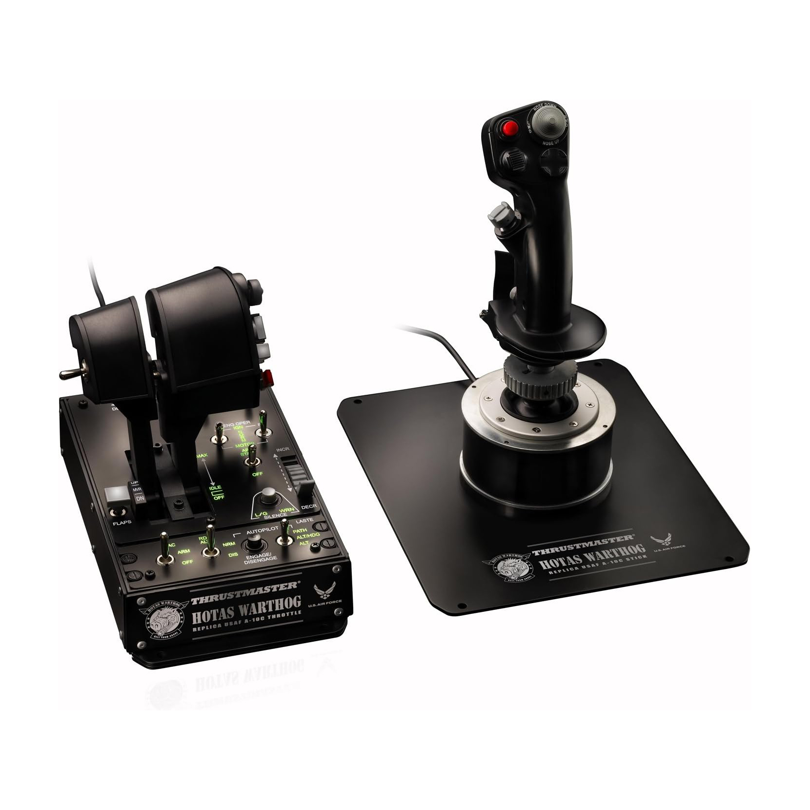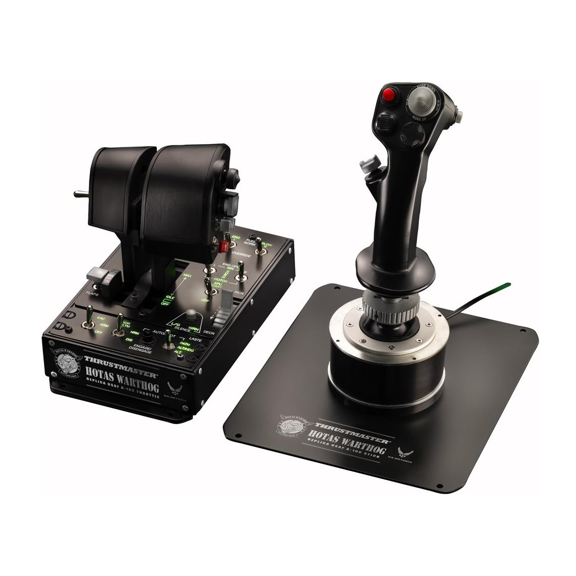 The HOTAS WARTHOG USB dual-throttle joystick is the result of an intense collaboration between Thrustmaster’s development teams and members of the “simmer” community. Exchanges and studies were carried out constantly throughout the product’s development phase, in order to create a joystick which meets the most specific and precise requirements of the experts. The result is the HOTAS WARTHOG: a replica set of the joystick, dual throttle system and dual throttle control panel of the U.S. Air Force A-10C attack aircraft.