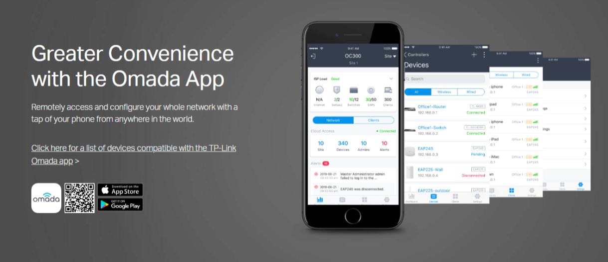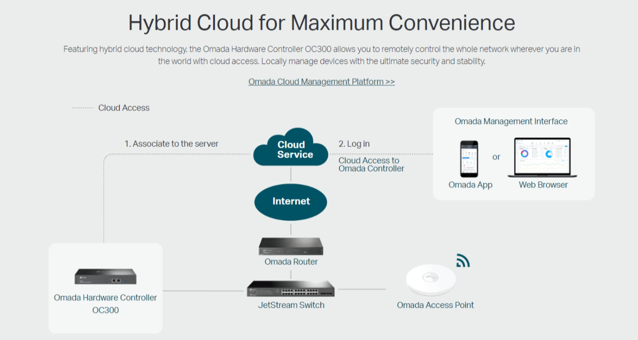 ● Centralized Management: Up to 500 Omada access points, 100 JetStream switches, and 100 Omada routers.