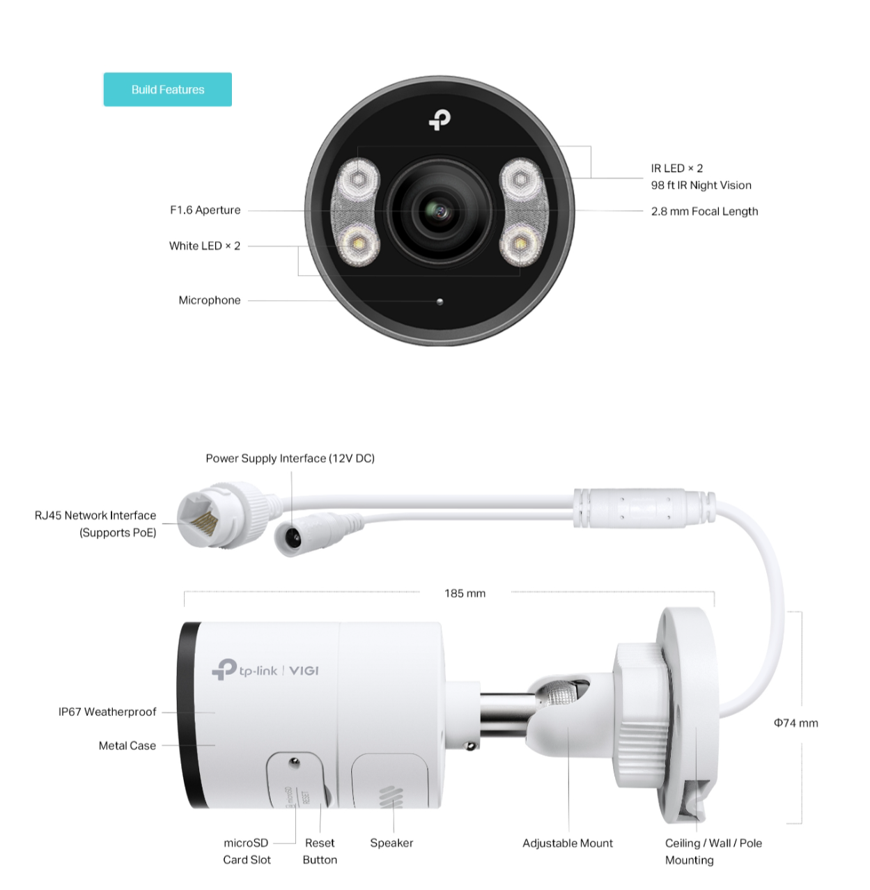 ✨✨TP-Link VIGI C345 4MP COLOR BULLET METAL POE&DC กล้องวงจรปิดมีเลนส์ให้เลือก 4MM และ 6MM ของแท้ ✨✨