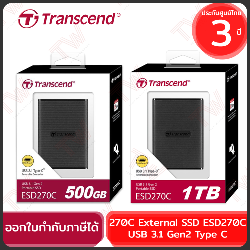 ✨✨Transcend 270C 500 GB , 1TB External SSD ESD270C USB 3.1 Gen2 Type C เอสเอสดีแบบพกพา ของแท้ ประกันศูนย์ 3ปี✨✨