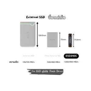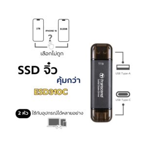✨✨Transcend 310C External SSD 512GB,1TB USB Type C/A – Black เอสเอสดีแบบพกพา ของแท้✨✨