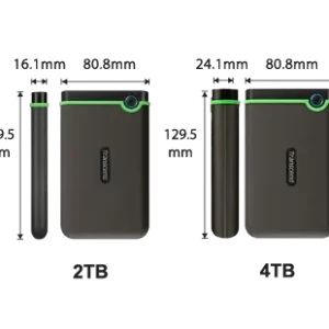 Dimensions 4TB: 129.5 mm x 80.8 mm x 24.1 mm (5.10″ x 3.18″ x 0.95″)