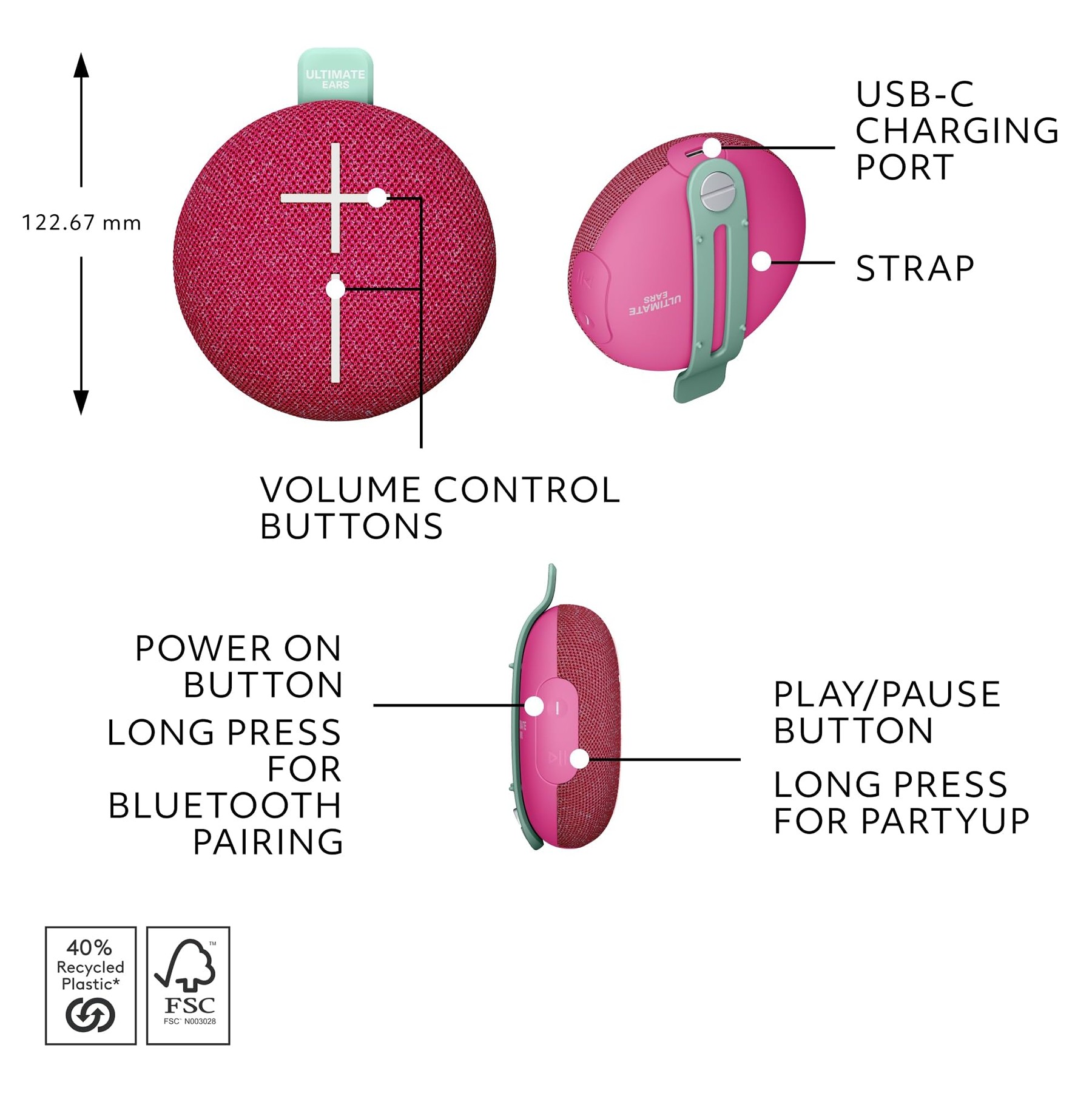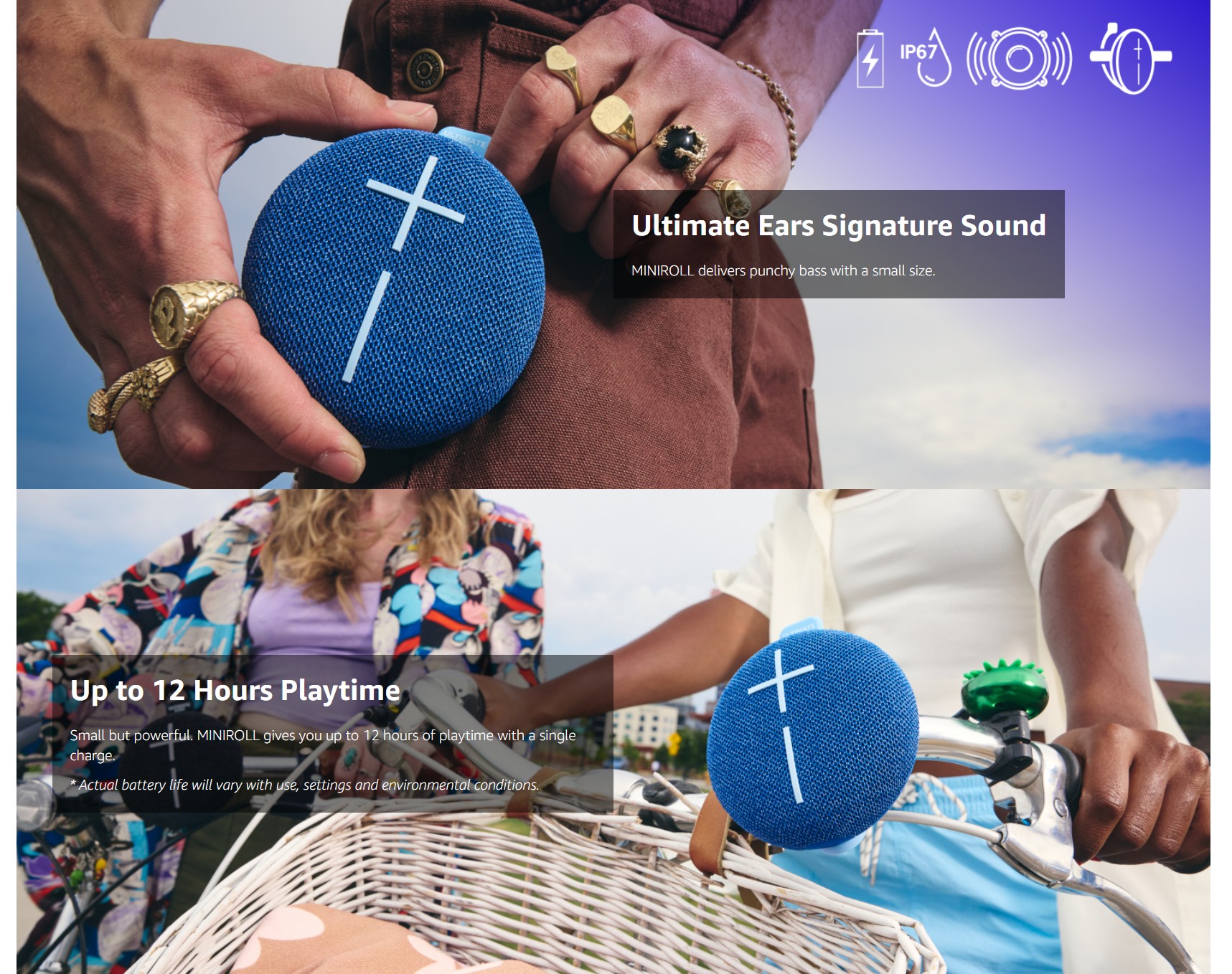 🔶Ultimate Ears Miniroll [Black, Blue, Grey, Pink] ลำโพงไร้สาย ลำโพงบลูทูธ ของแท้ ประกันศูนย์ 2ปี🔶