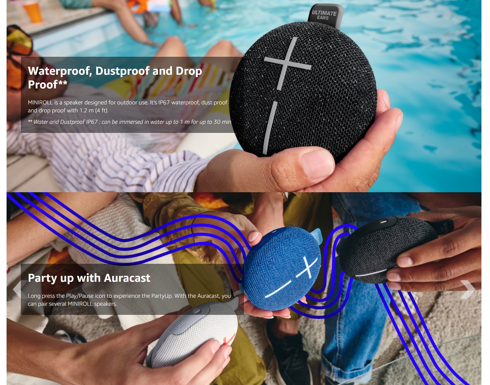 ✅ Auracast Technology: รองรับการเชื่อมต่อลำโพง Miniroll หลายๆ ตัวเข้าด้วยกันได้ไม่จำกัด เพื่อเพิ่มพลังเสียง