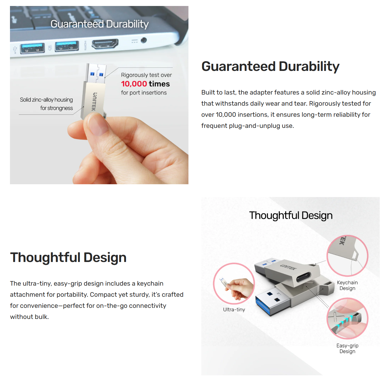 🔶UNITEK Adapter USB-A to USB-C Ultra-Tiny Zinc [A1034NI] อะแดปเตอร์ ของแท้ ประกันศูนย์ 2ปี🔶