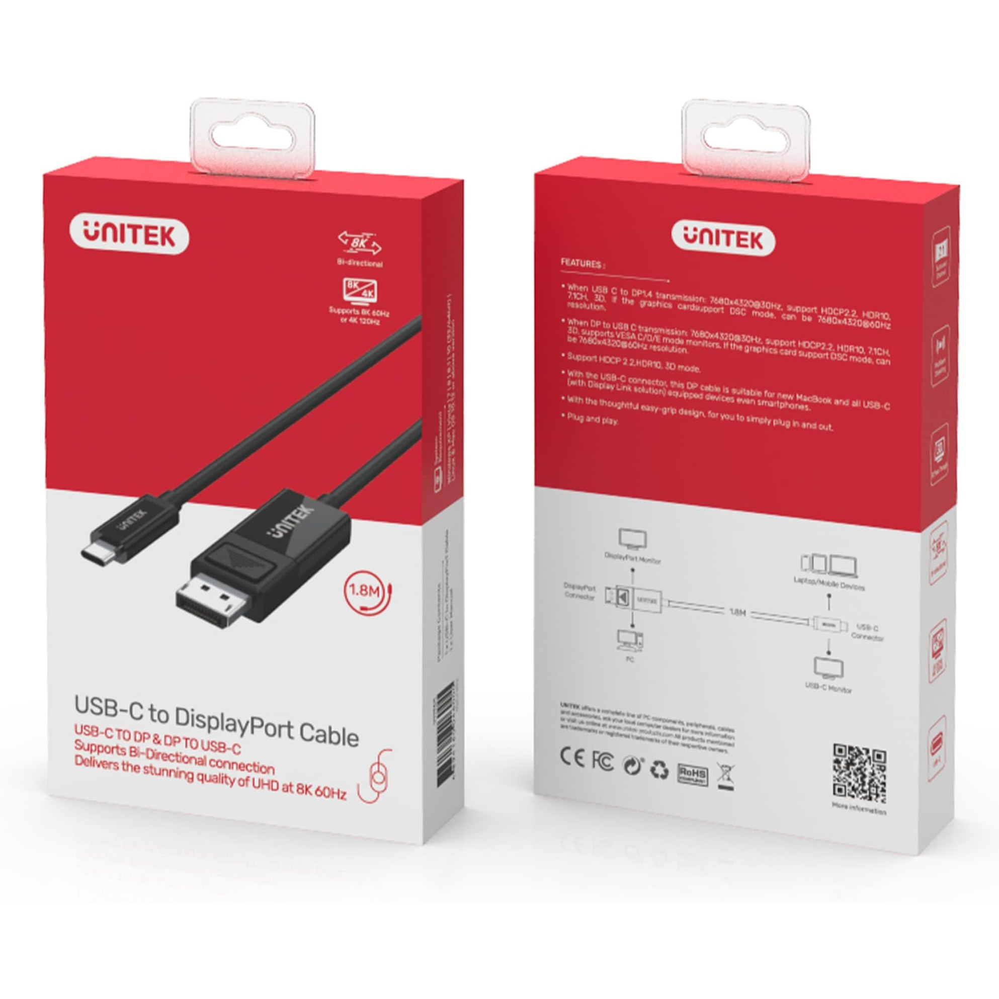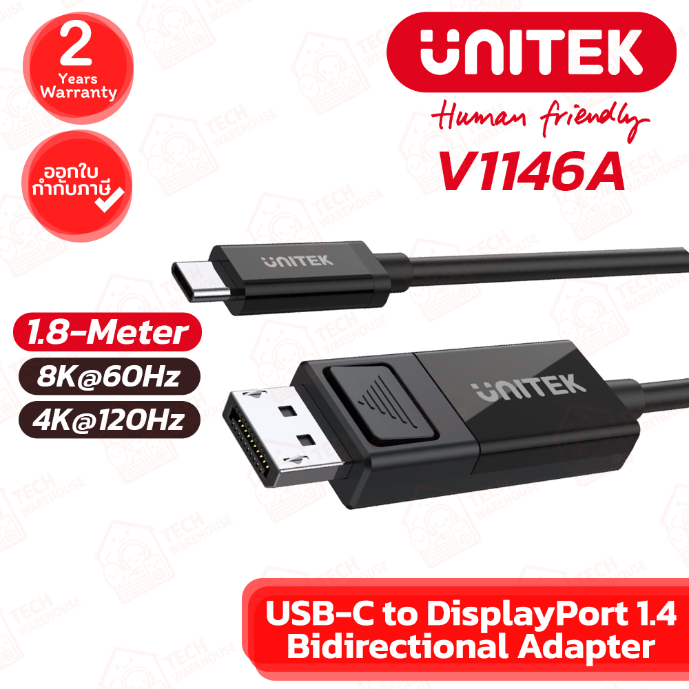 🔶UNITEK Cable USB-C to DiplayPort 1.4 Bidirectional [V1146A] สายเคเบิ้ล ของแท้ ประกันศูนย์ 2ปี🔶
