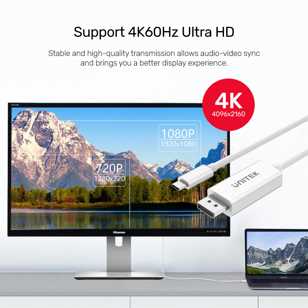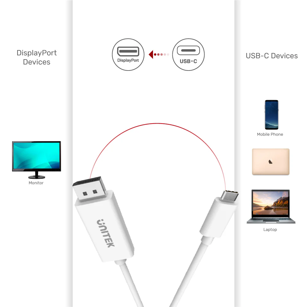 🔶UNITEK Cable USB-C to DisplayPort 1.2 [V400A] 1.8-Meter สายเคเบิ้ล ของแท้ ประกันศูนย์ 2ปี🔶