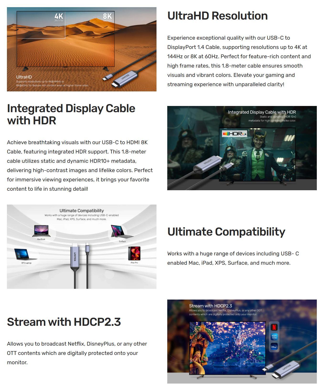 🔶UNITEK Cable USB-C TO HDMI 8K [V1423B] 1.8-Meter สายเคเบิ้ล ของแท้ ประกันศูนย์ 2ปี🔶
