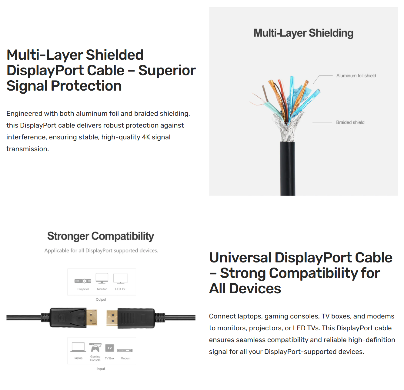 UNITEK DisplayPort 1.2 Cable 4K@60Hz [3-Meter, 5-Meter] สายเคเบิ้ล สาย DP ของแท้ ประกันศูนย์ 2ปี