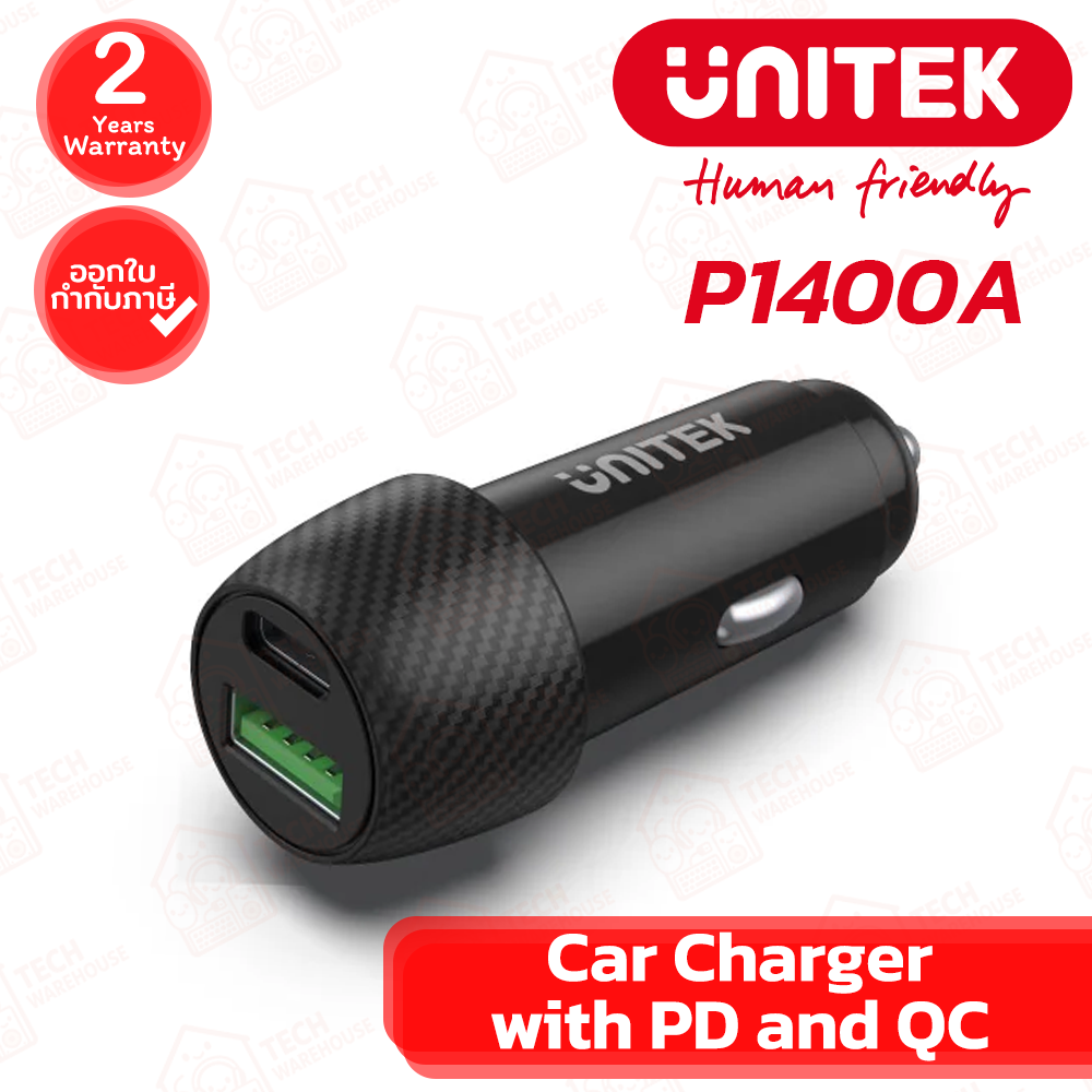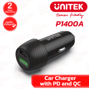 🔶UNITEK P1400A Car Charger with PD and QC 38W 2-Port ที่ชาร์จแบตในรถยนต์ ของแท้ ประกันศูนย์ 2ปี🔶