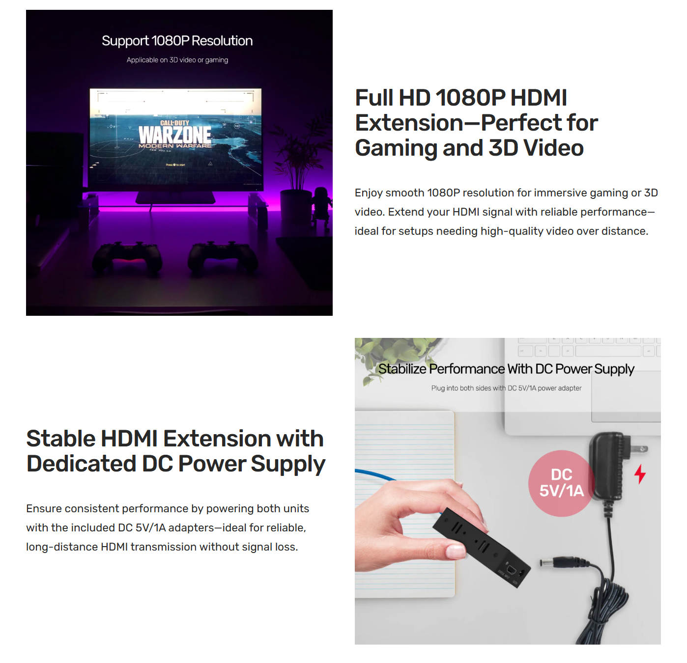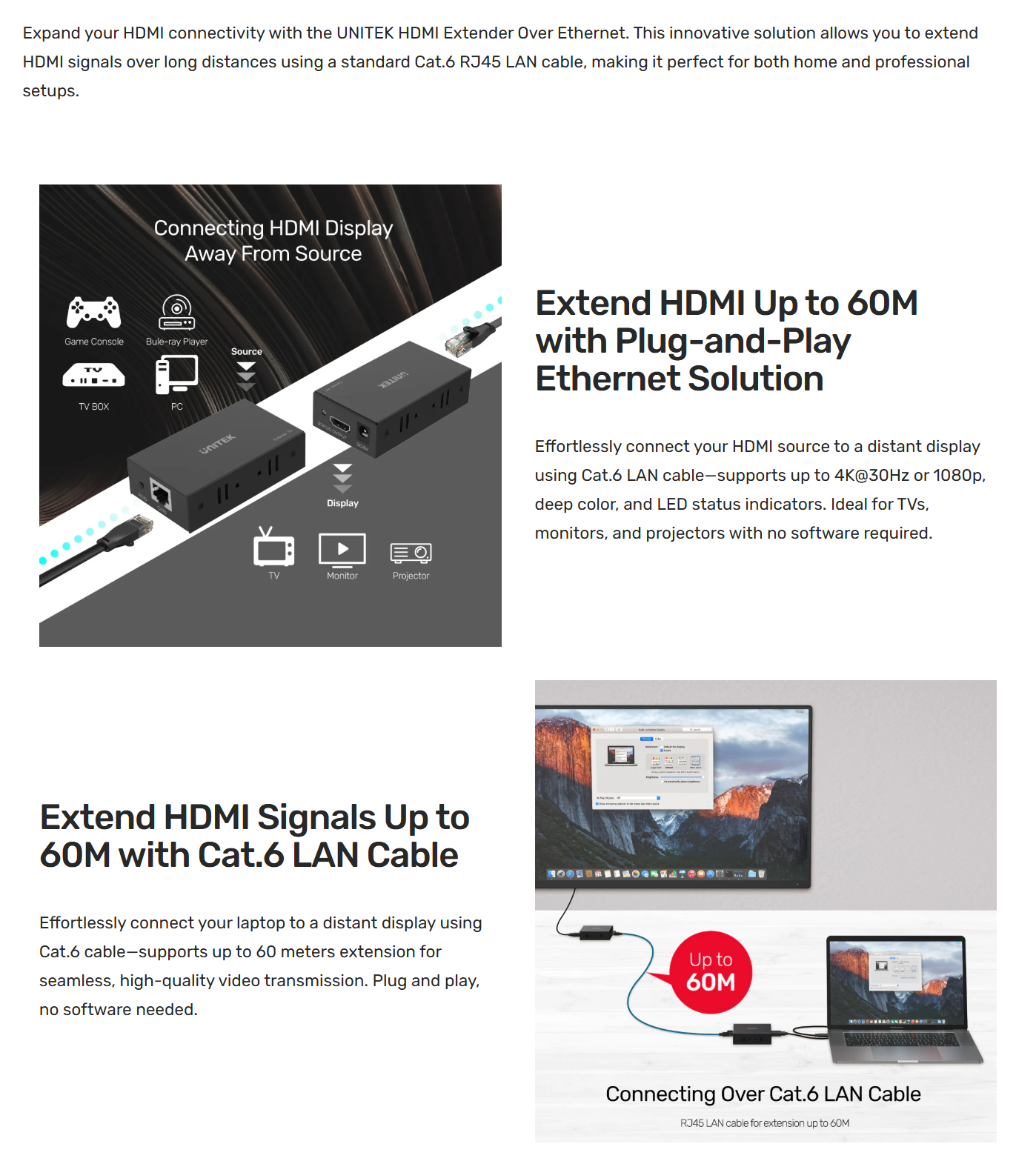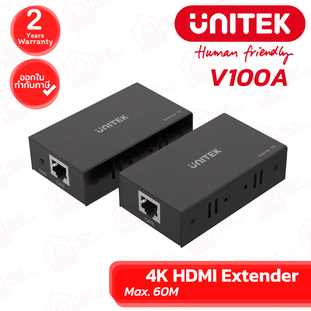 UNITEK V100A 4K HDMI Extender อุปกรณ์ขยายสัญญาณด้วยสาย LAN Cat.6 ของแท้ ประกันศูนย์ 2ปี