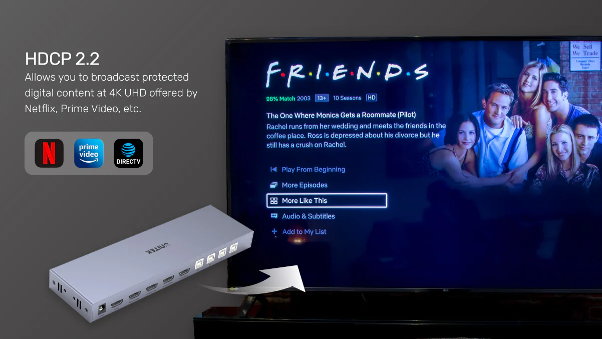 ✅ รองรับ HDCP 2.2: ใช้งานกับคอนเทนต์ป้องกันลิขสิทธิ์จาก Netflix และ Prime Video ได้