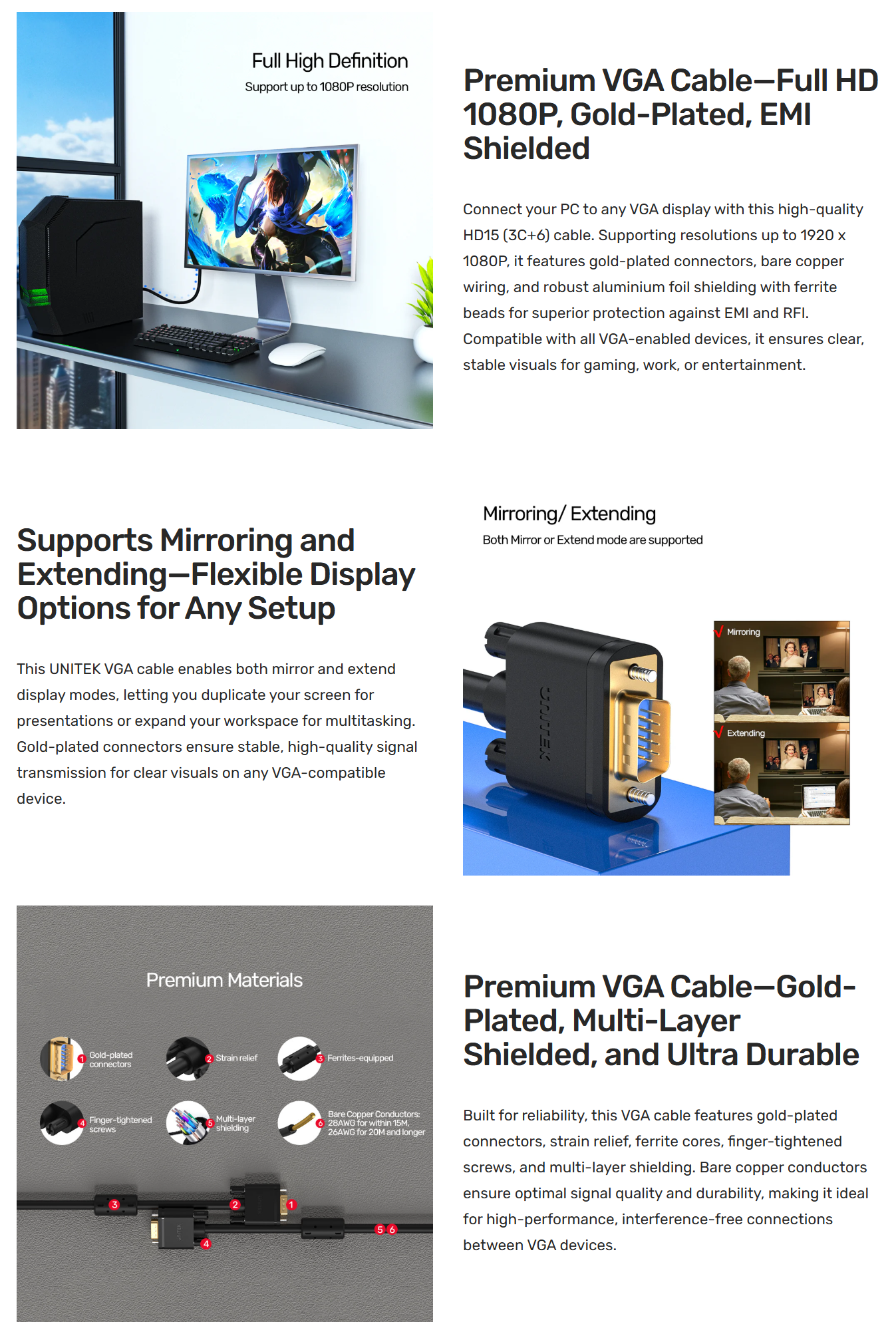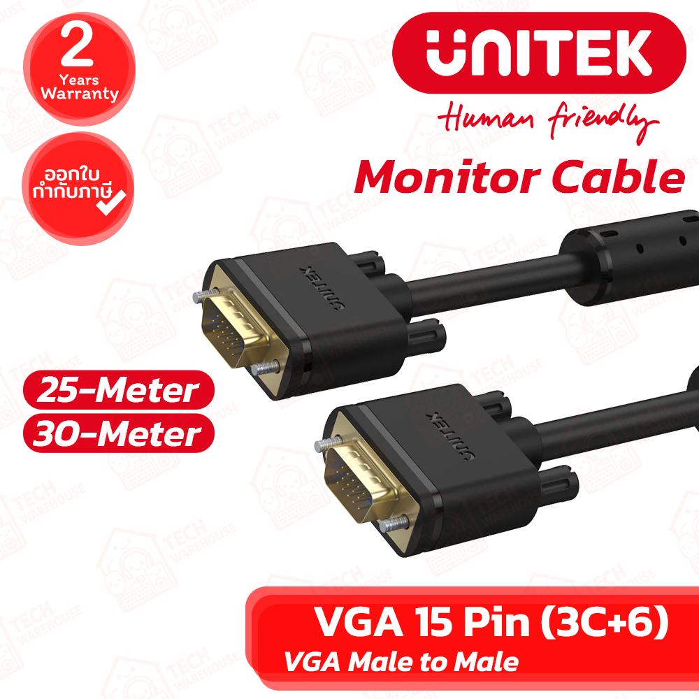🔶UNITEK VGA Cable 15 Pin (3C+6) Male to Male [25M, 30M] สายจอมอนิเตอร์ ของแท้ ประกันศูนย์ 2ปี🔶