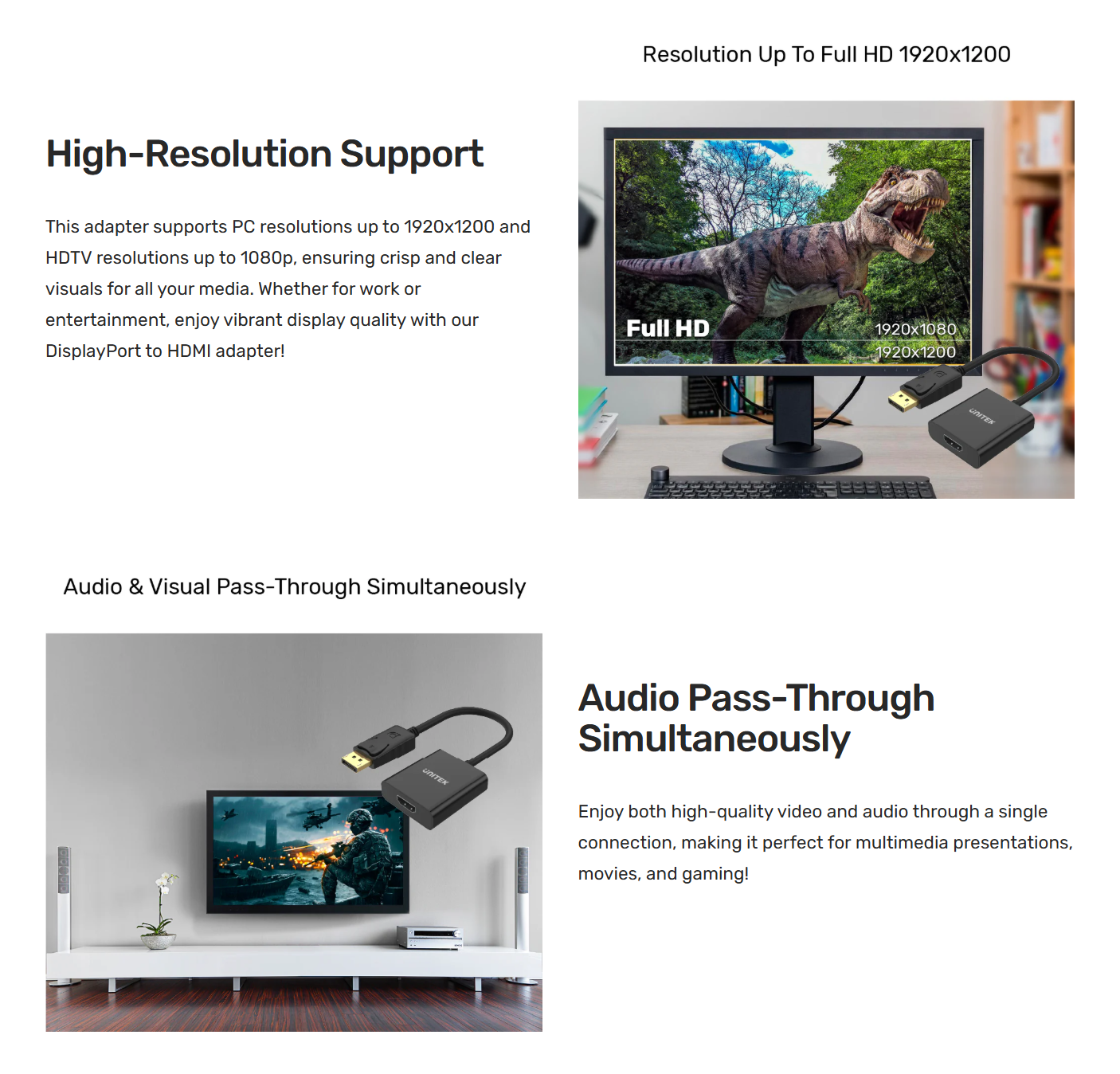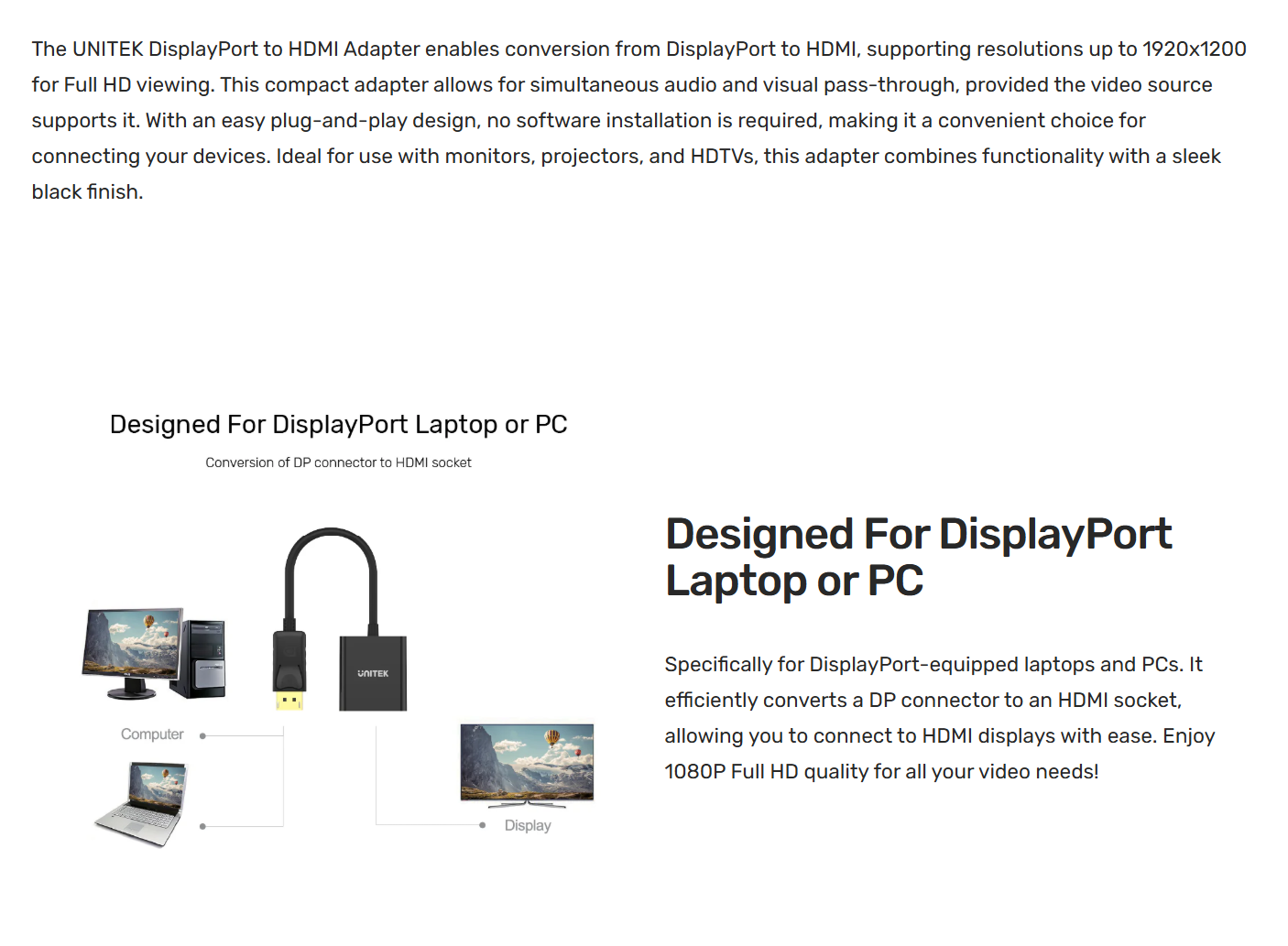 💠 Max Output Resolution – 2K@60Hz (PC), 1080p (HDTV)