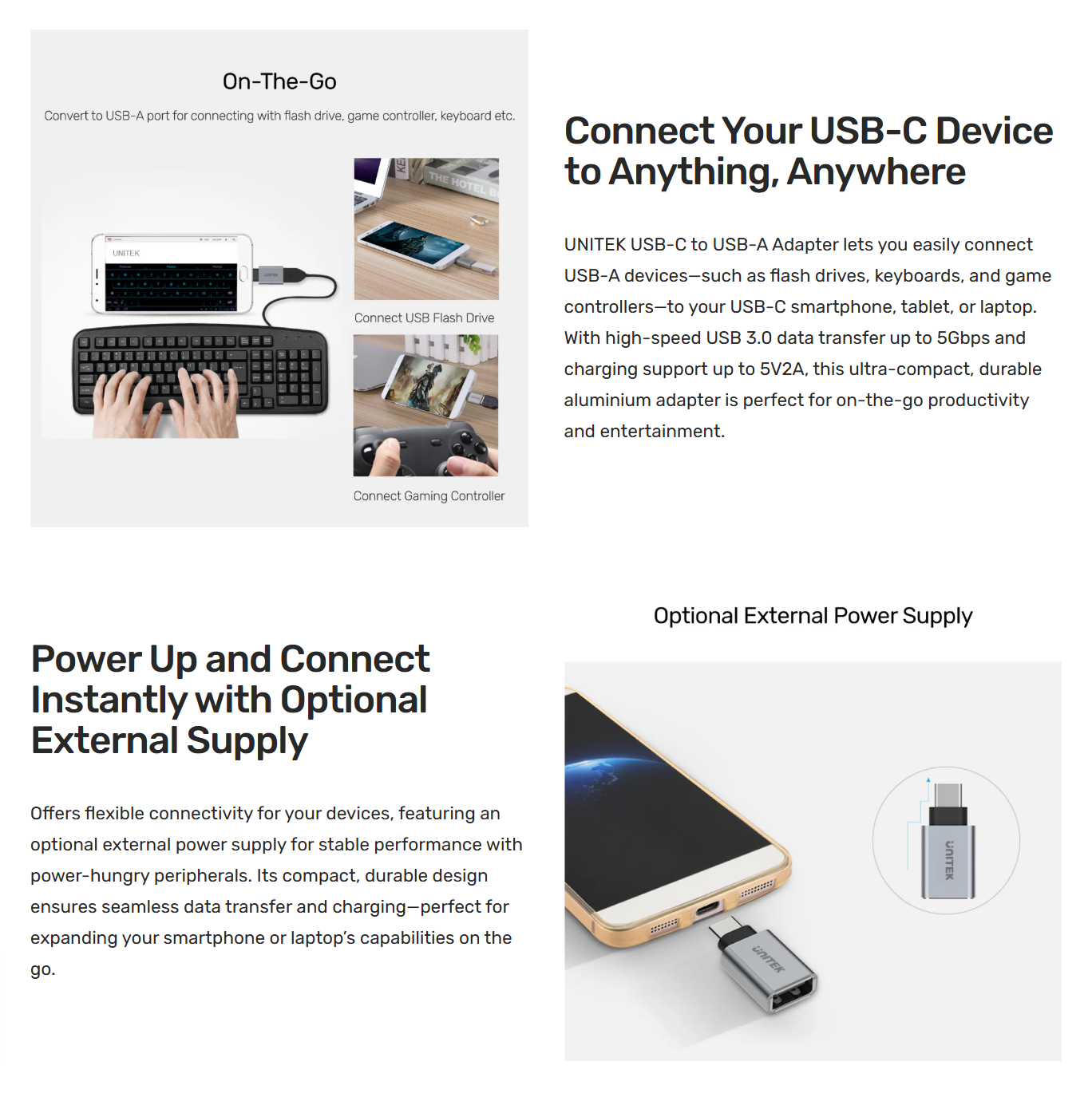 🔶Unitek Y-A025CGY USB-C to USB-A Adapter อะแดปเตอร์ ของแท้ ประกันศูนย์ 2ปี🔶