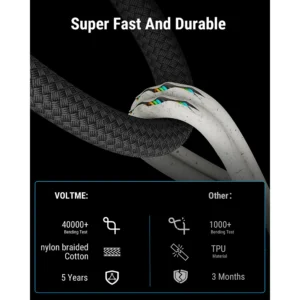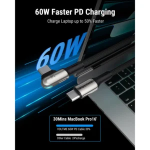 VOLTME USB-C cable supports up to 60W power delivery, allowing fast charging for smartphones, tablets, laptops, and other devices when used with a compatible charger. It also supports high-speed data transfer up to 480Mbps, enabling the transfer of a 1GB file in seconds. This cable can be used for both charging and data transfer.