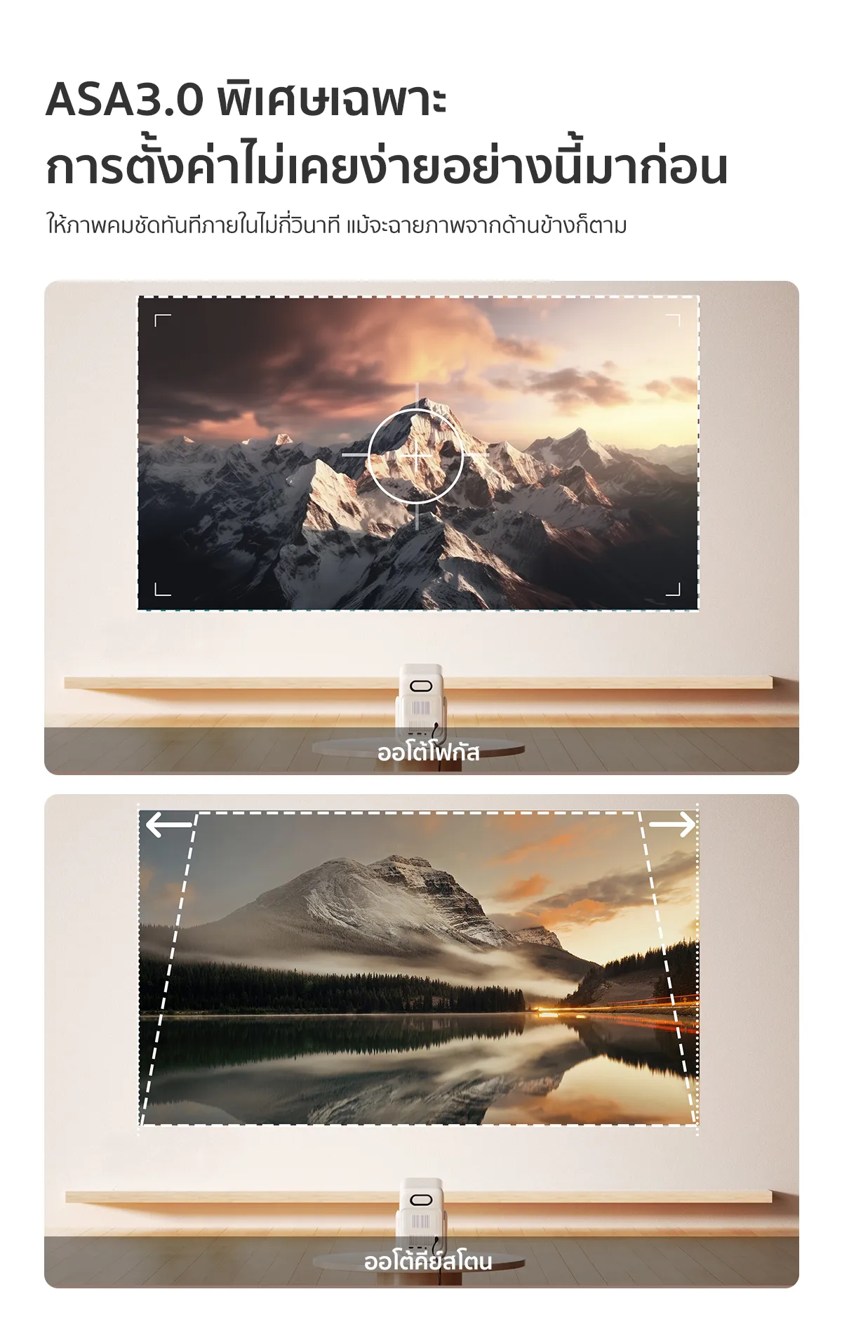 💠 ASA3.0 พิเศษเฉพาะ การตั้งค่าไม่เคยง่ายอย่างนี้มาก่อน ให้ภาพคมชัดทันทีภายในไม่กี่วินาทีแม้จะฉายภาพจากด้านข้างก็ตาม