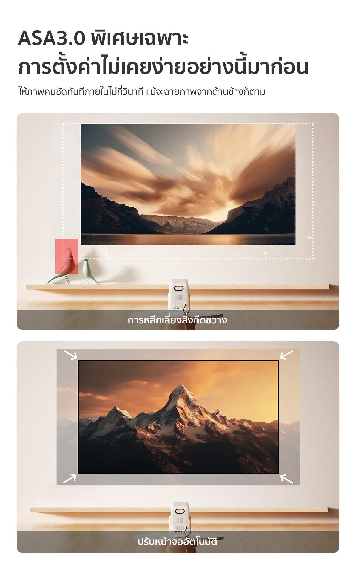 ✅ เทคโนโลยี ASA 3.0 สามารถปรับ Auto Focus / Auto Key Stone Correction / หลบสิ่งกีดขวาง / Auto Screen Fit