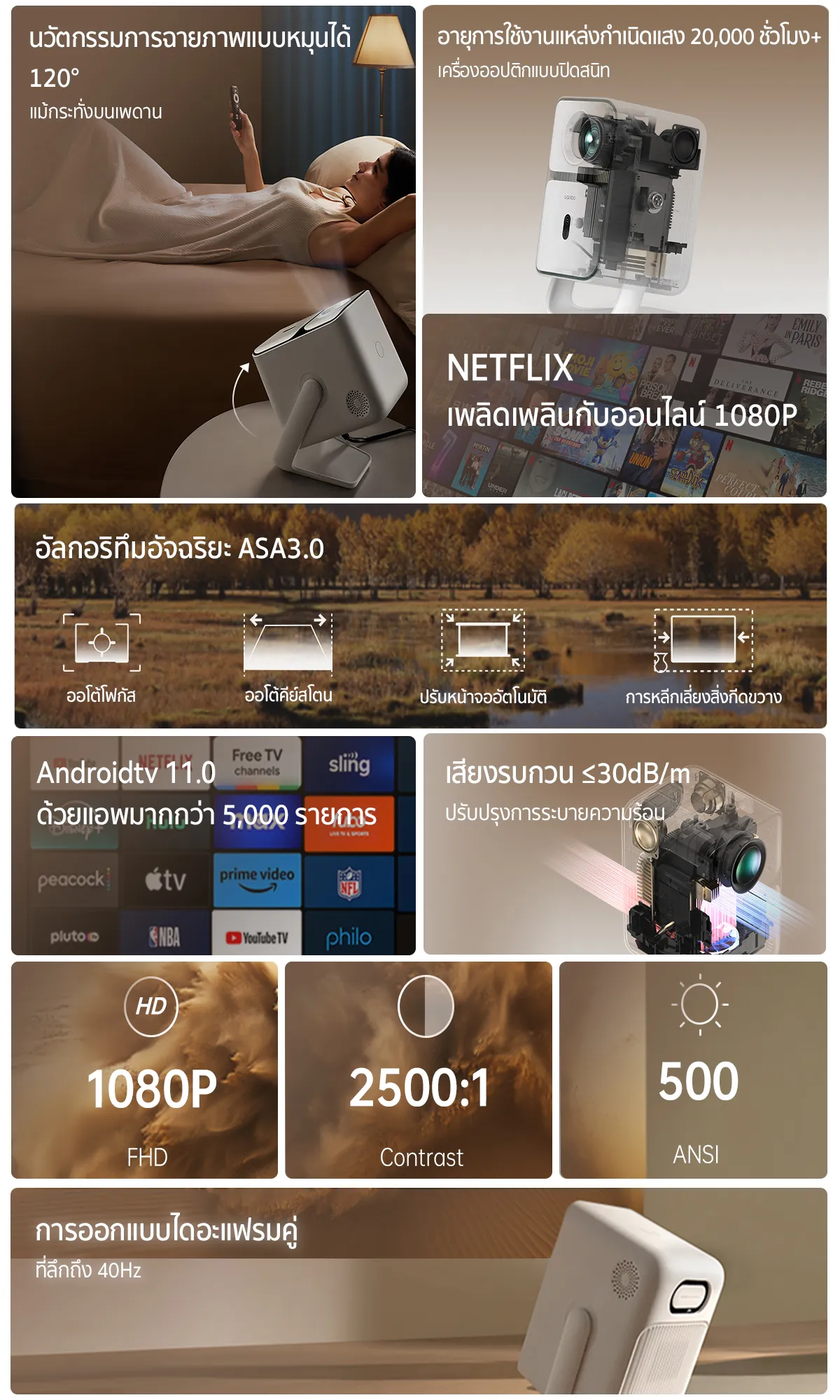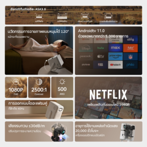 ✅ โปรเจคเตอร์ สมาร์ท ระบบปฎิบัติการ Android TV 11.0