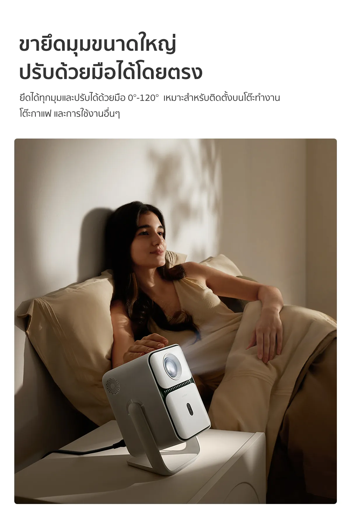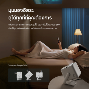 💠 มุมมองอิสระ ดูได้ทุกที่ที่คุณต้องการ นวัตกรรมการฉายภาพแบบหมุนได้ 120° ปรับได้แนวนอน 360° ช่วยให้คุณเพลิดเพลินกับภาพที่ชัดเจนแม้จะมองจากเพดาน