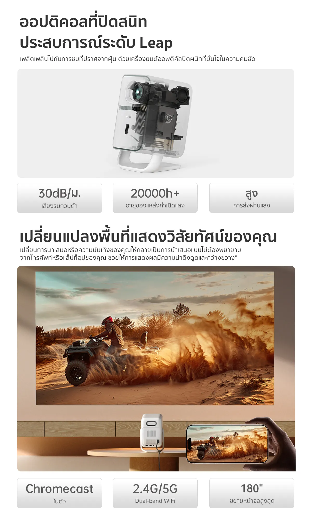 💠 ออปติคอลที่ปิดสนิท ประสบการณ์ระดับ Leap เพลิดเพลินไปกับการชมที่ปราศจากฝุ่นด้วยเครื่องยนต์ออพติคัลปิดผนึกที่มั่นใจในความคมชัด